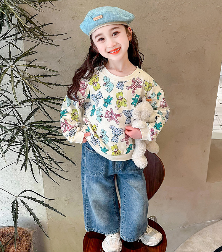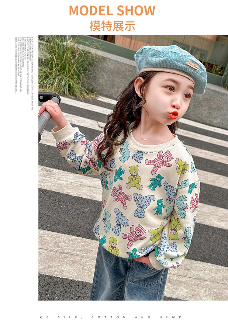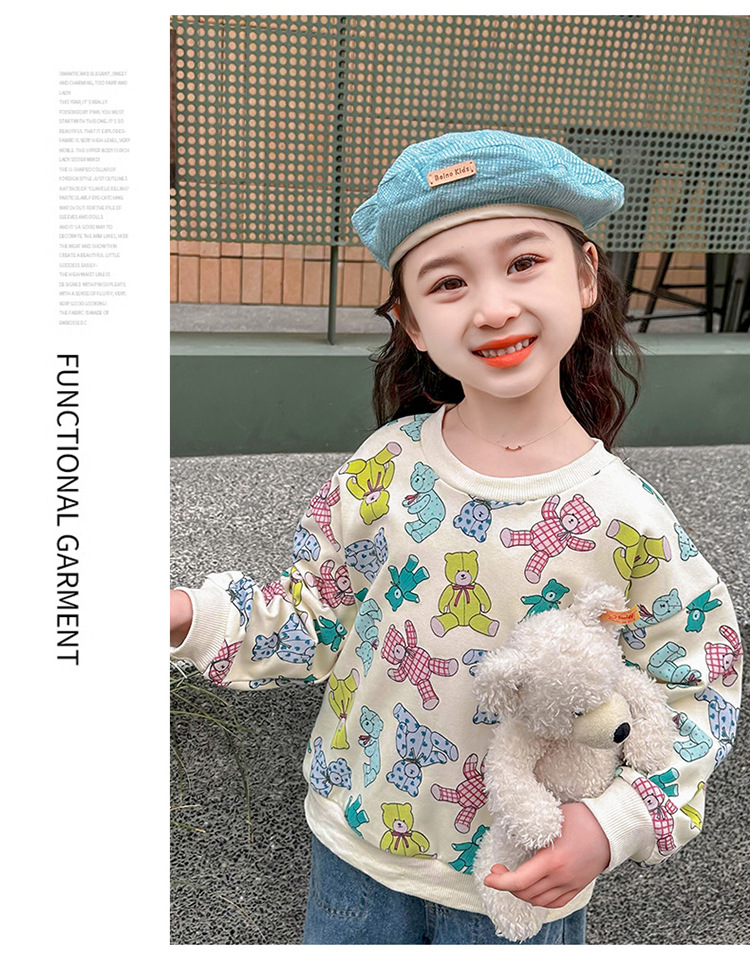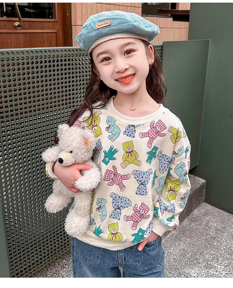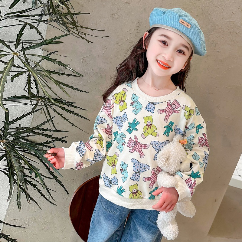 2024 년 아동복 여성용 보물 가을 가을 새 아기 소녀의 운동복베이스 만화 풀오버 베어 긴 소매 탑