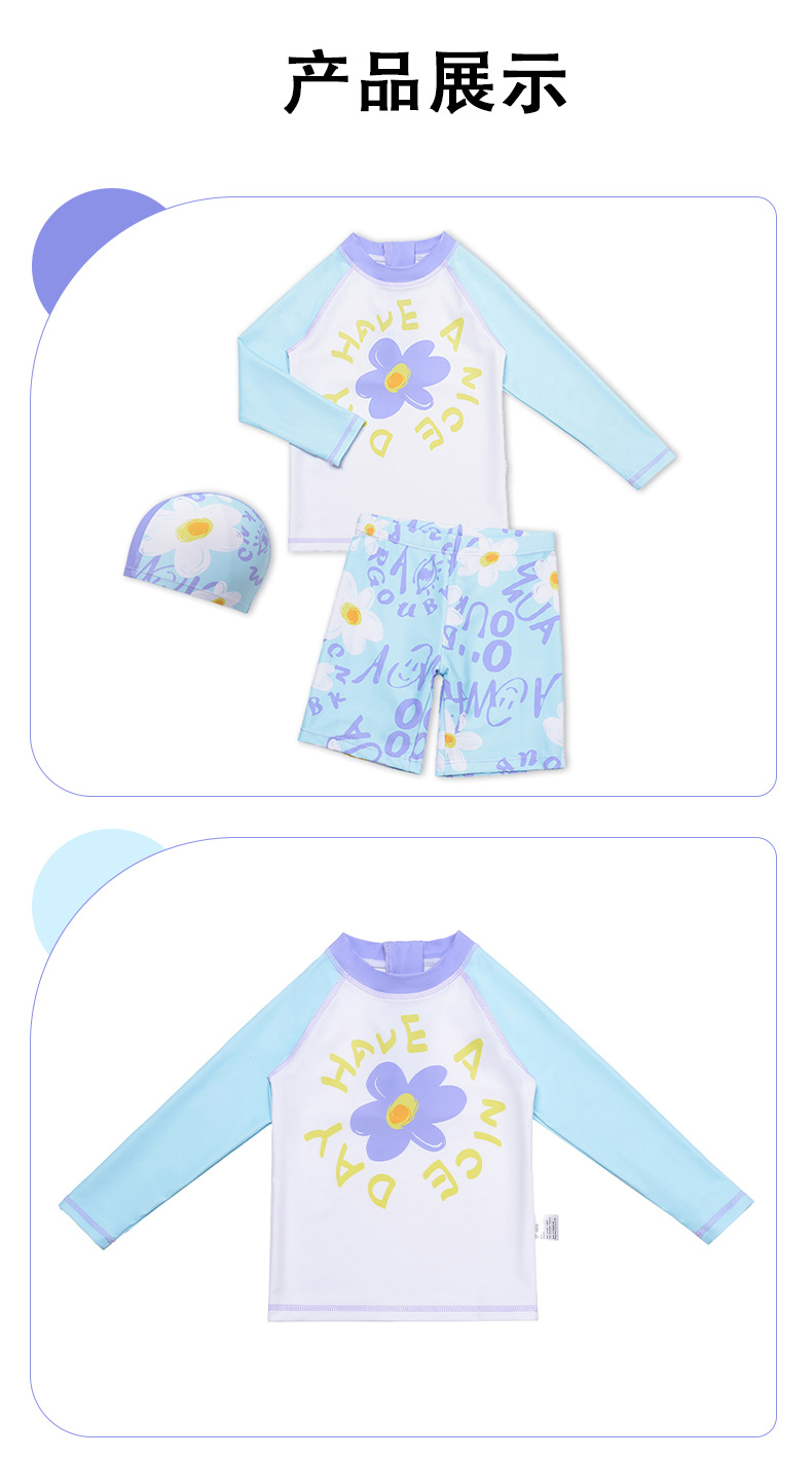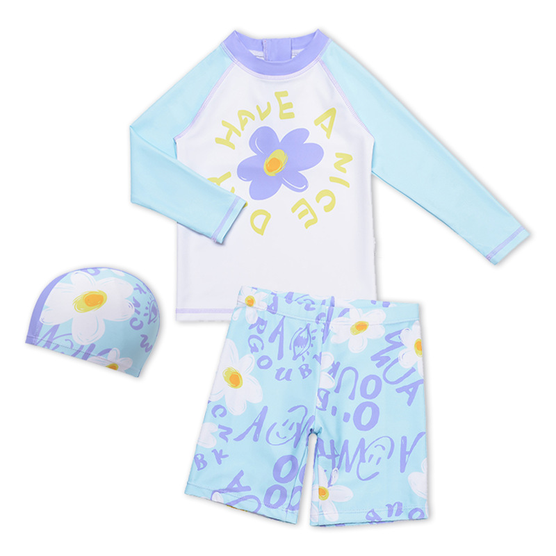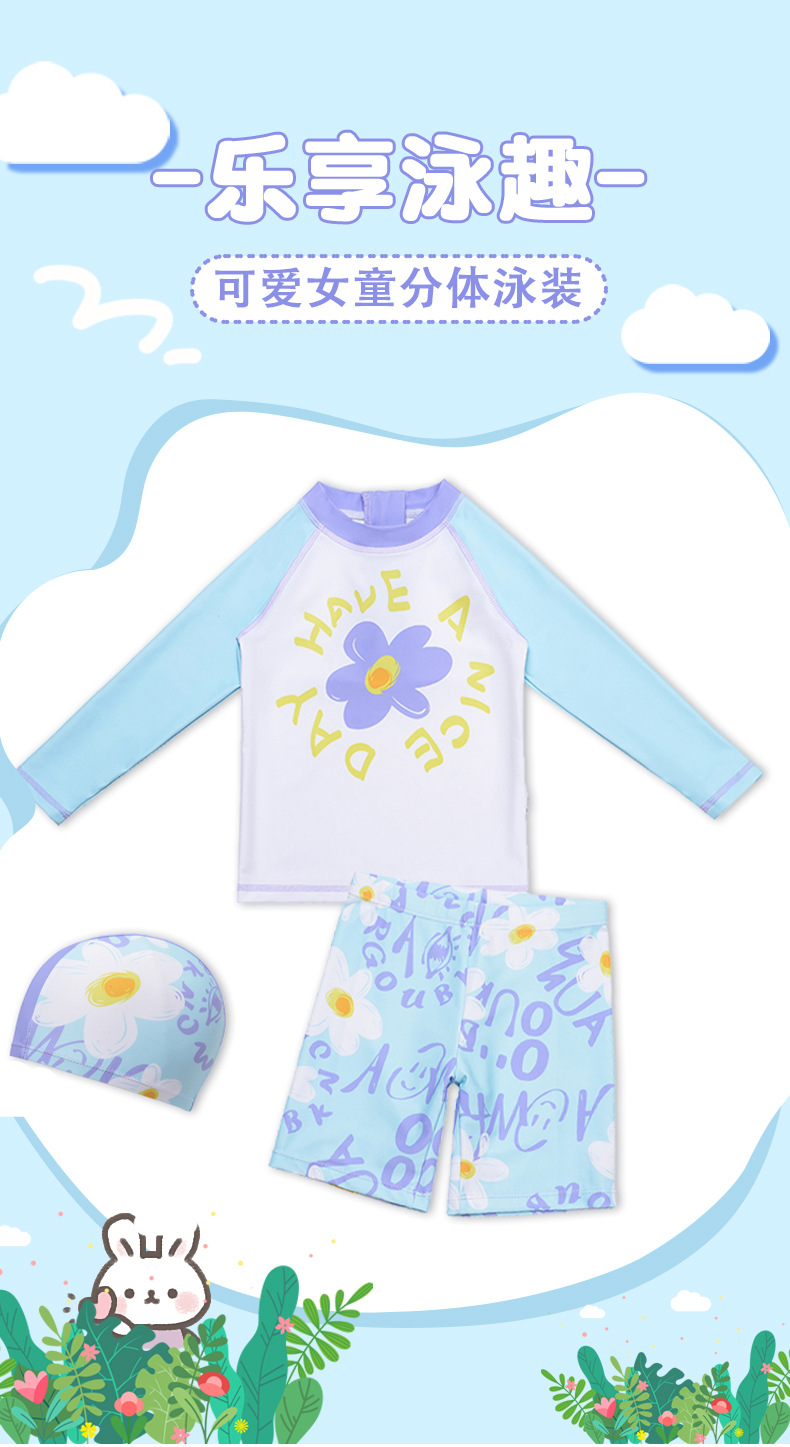 2025 귀여운 수영복 소녀 스플릿 자외선 차단제 3 피스 온천 수영복 속건성 수영복 만화 수영복 세트