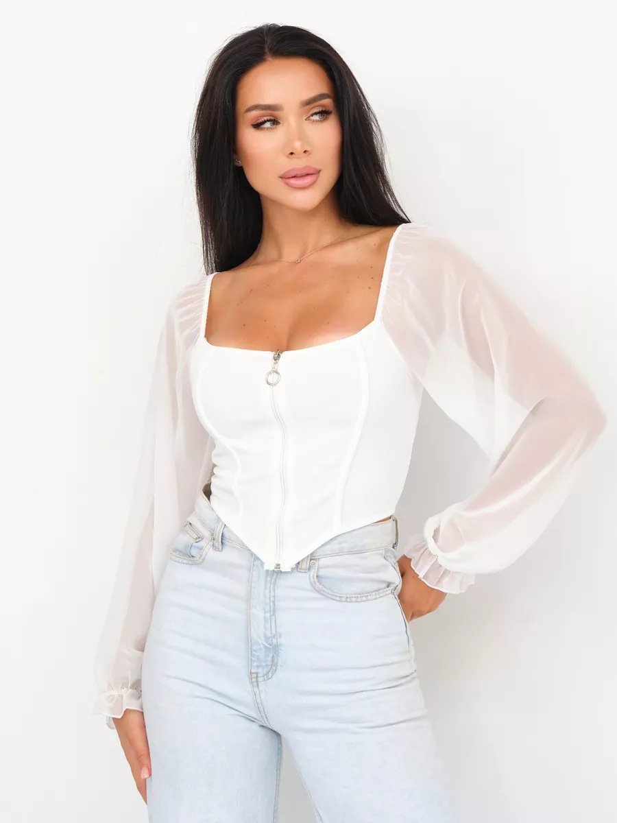 2025 국경을 넘는 유럽과 미국의 새로운 로우 컷 V 넥 쉬폰 랜턴 소매 슬림핏 패션 섹시한 셔츠 카디건 탑 여성