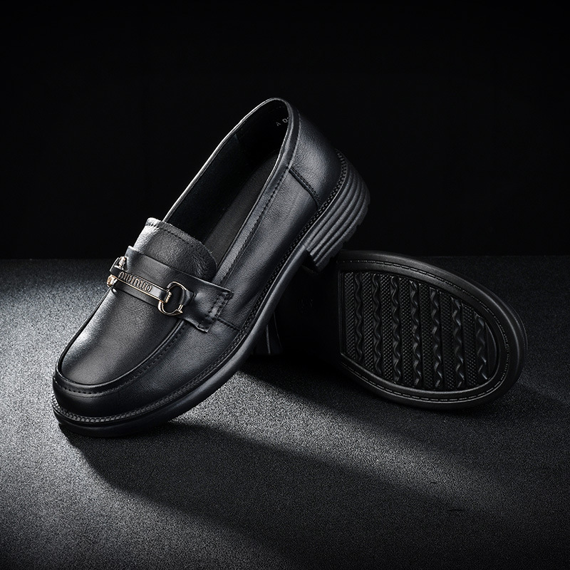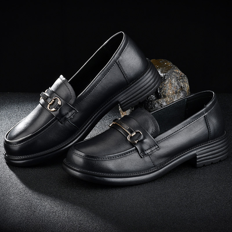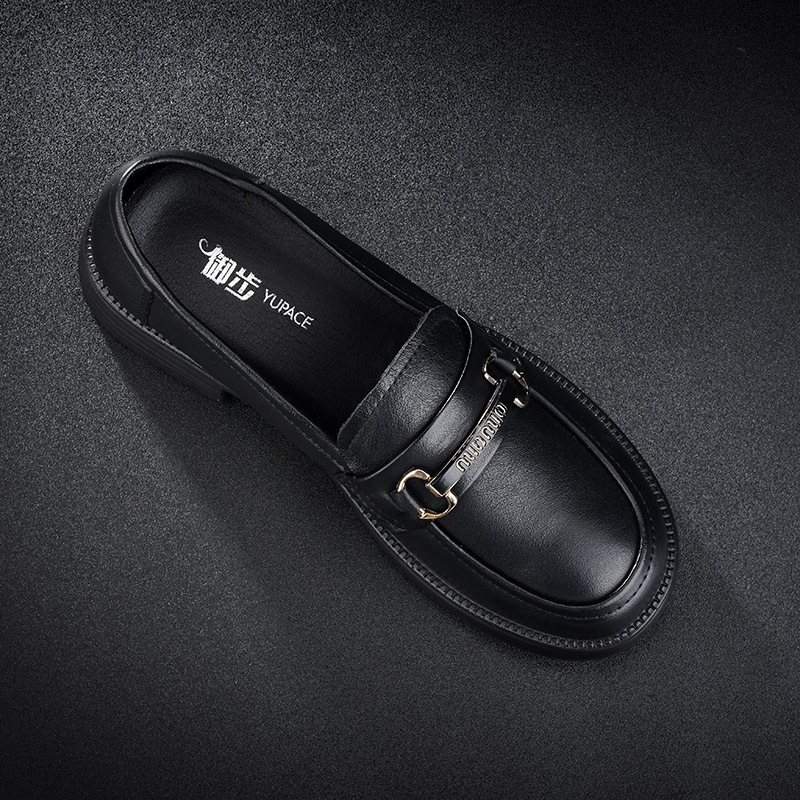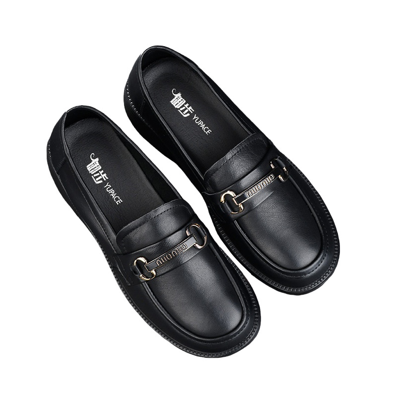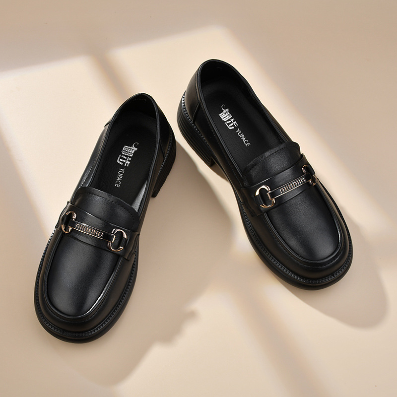 Yubu 가죽 로퍼 여성 블랙 특별 가격 봄과 가을 영국 스타일 싱글 레이어 신발 부드러운 두꺼운 바닥 작은 가죽 신발 새로운 플러스 사이즈 여성