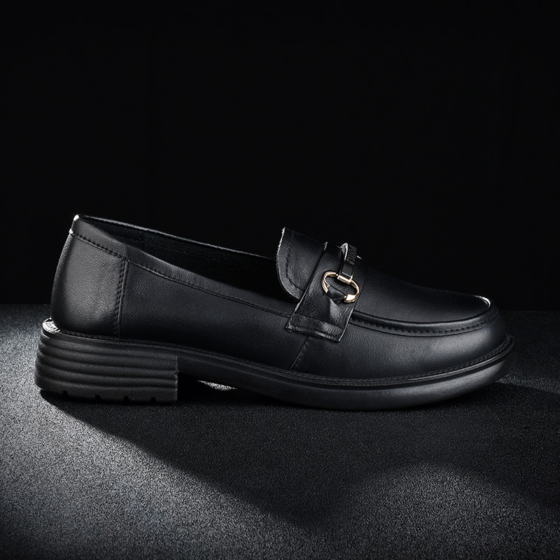 Yubu 가죽 로퍼 여성 블랙 특별 가격 봄과 가을 영국 스타일 싱글 레이어 신발 부드러운 두꺼운 바닥 작은 가죽 신발 새로운 플러스 사이즈 여성스토어 가기
