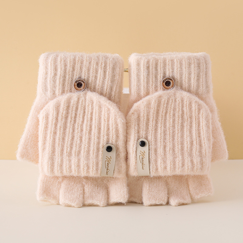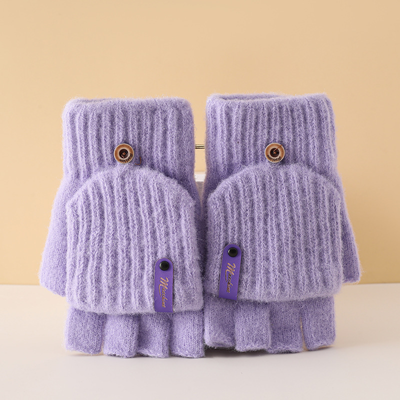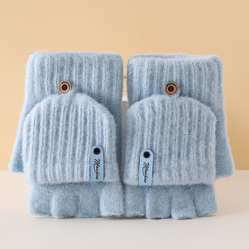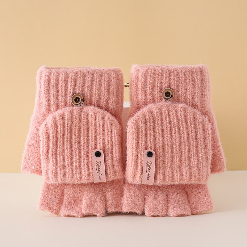 어린이 따뜻한 장갑 소년과 소녀 겨울 중학생, 냉간 자전거 하프 핑거 양모 뜨개질 쓰기