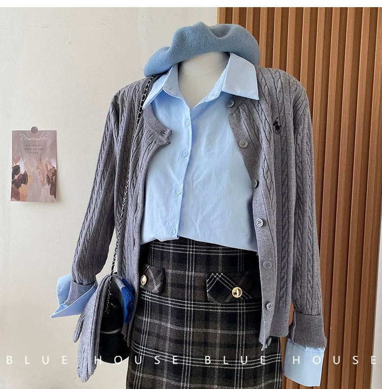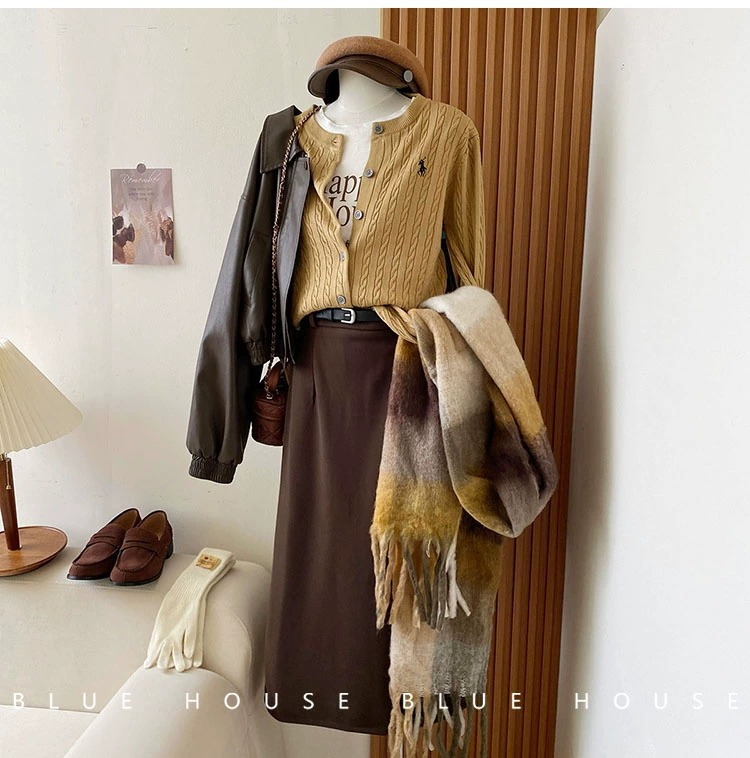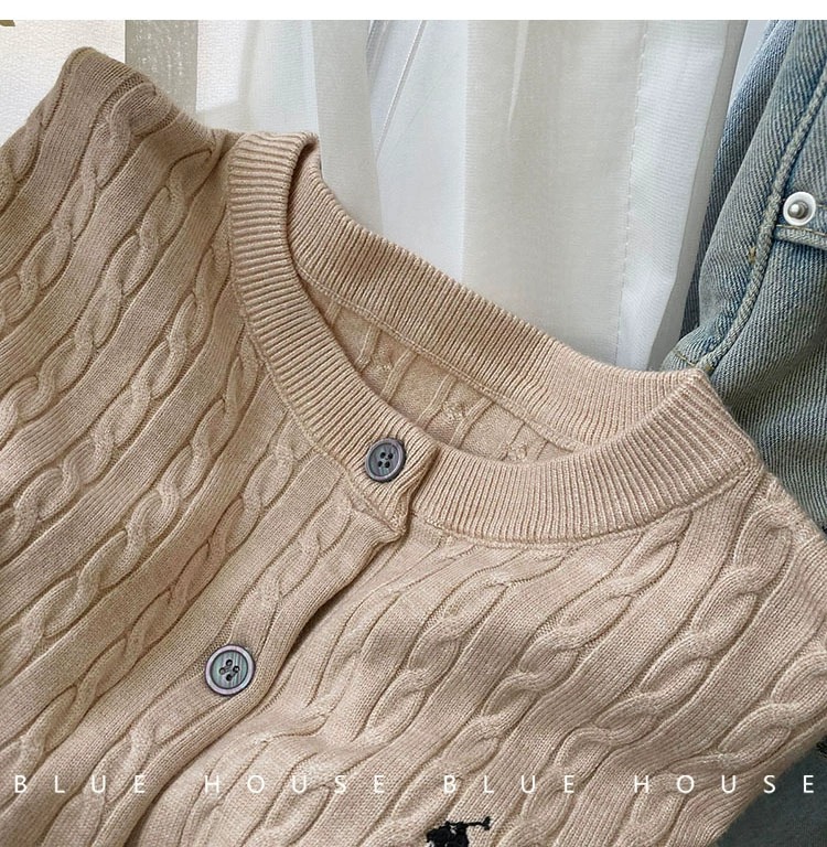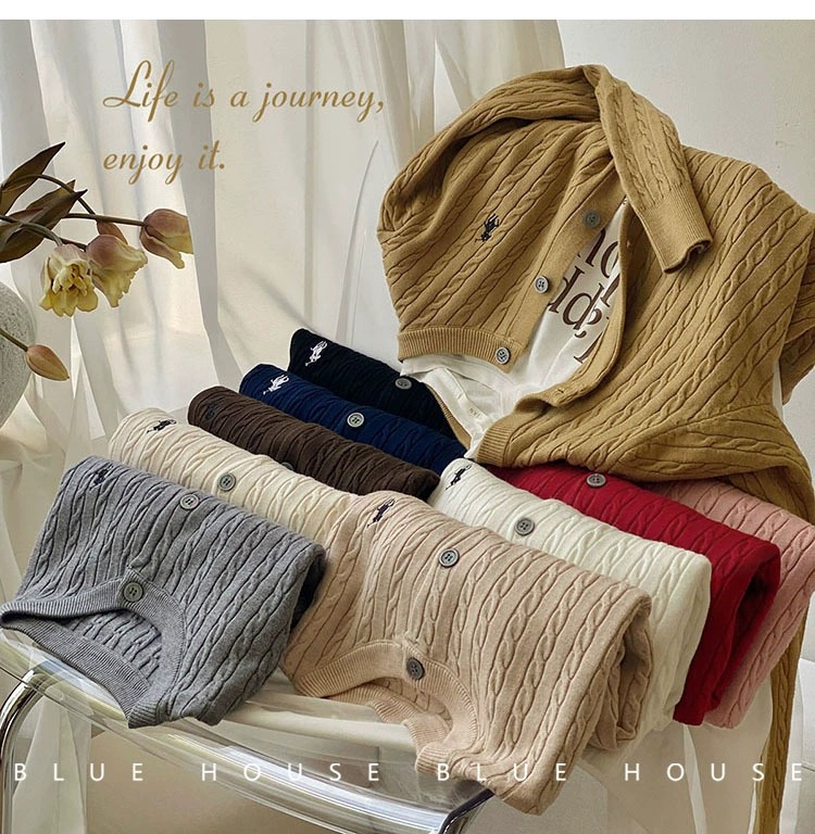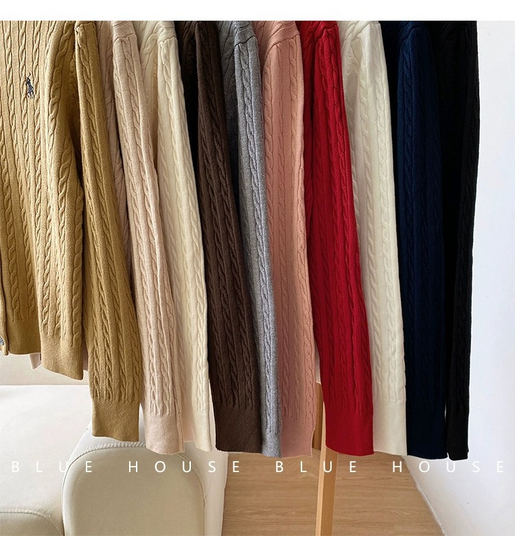 Old Qian Feng Pony 자수 트위스트 니트 카디건 여성 가을 및 겨울 이른 봄 빈티지 라운드 넥 레드 화이트 스웨터 코트스토어 가기