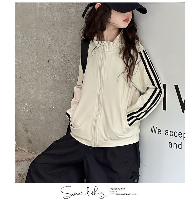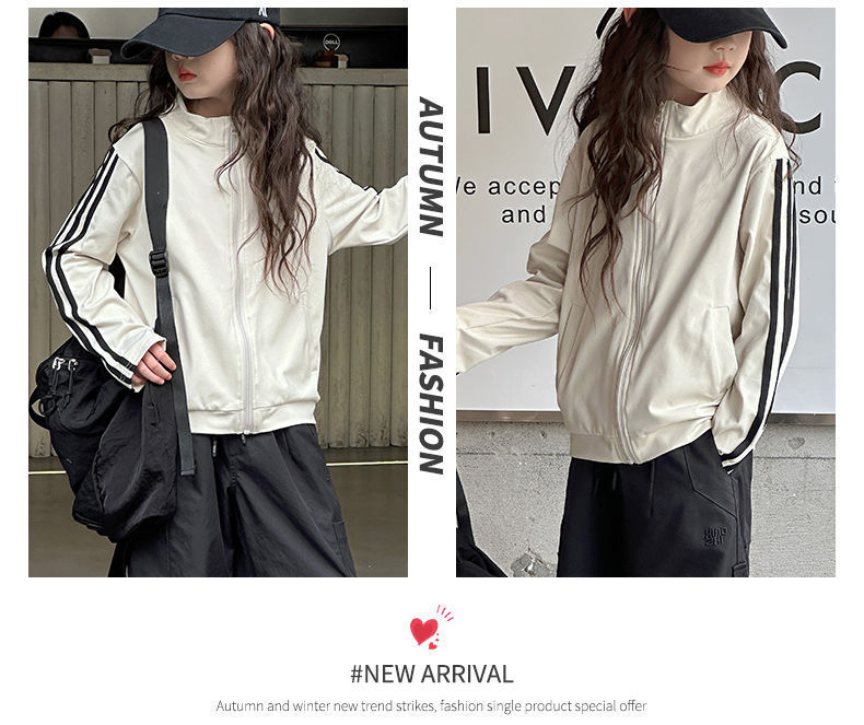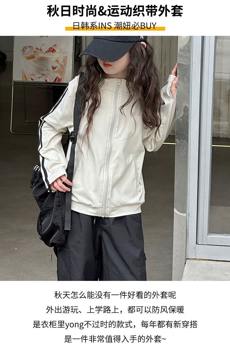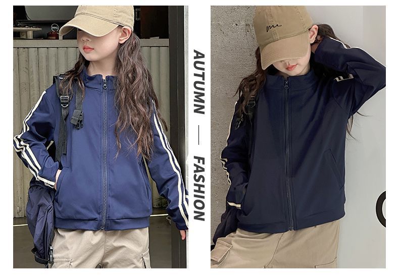 여자 가을 한국 최고 큰 아이들 가을 새로운 단색 줄무늬 Vit 스포츠 캐주얼 긴 소매 자켓