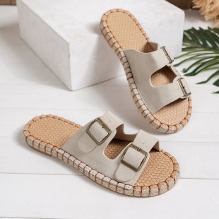 국경 간 Birkenstocks 샌들 여성용 2024 년 새로운 여름 두꺼운 밑창 비치 슈즈 밀짚으로 짠 아우터웨어 플러스 사이즈 로마 샌들스토어 가기
