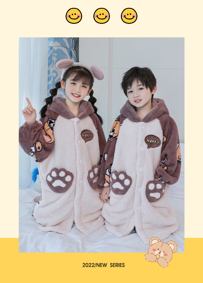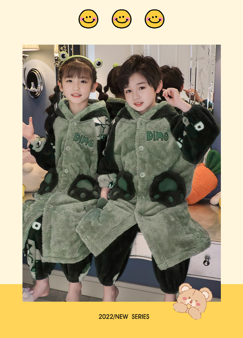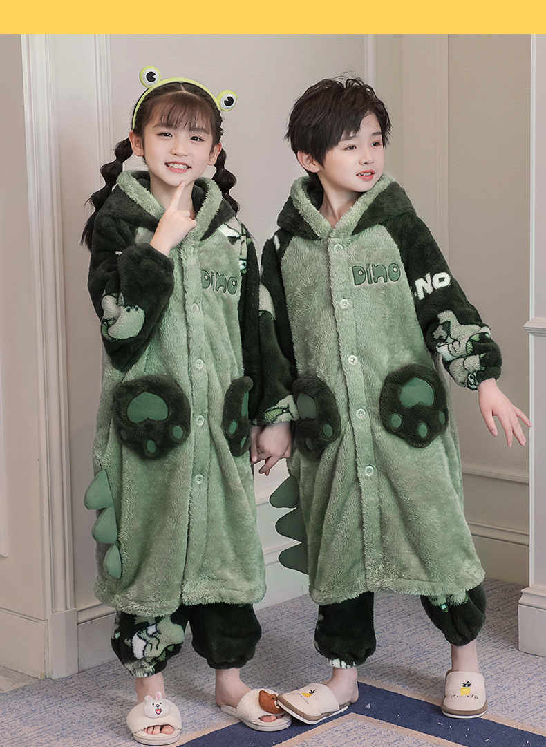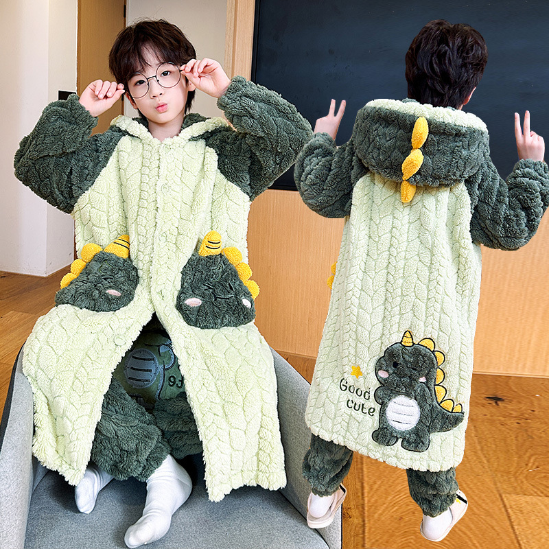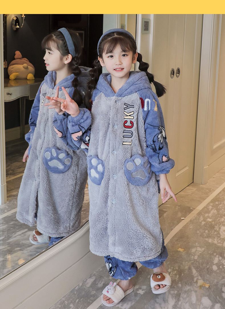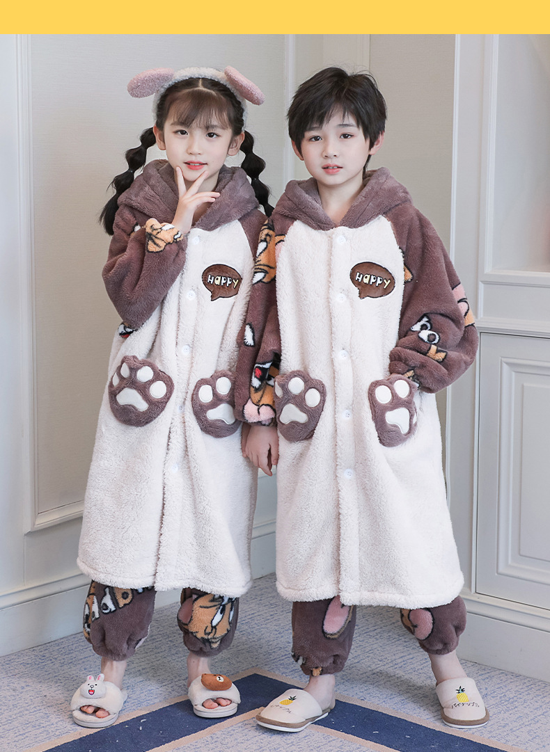 어린이 잠옷 겨울 두꺼운 산호 양털 소녀와 소녀 잠옷 학생 아기 플란넬 홈 옷 목욕 가운