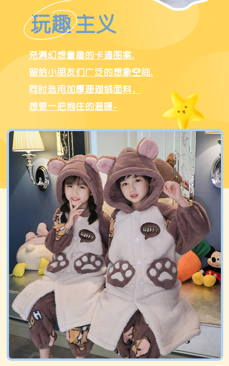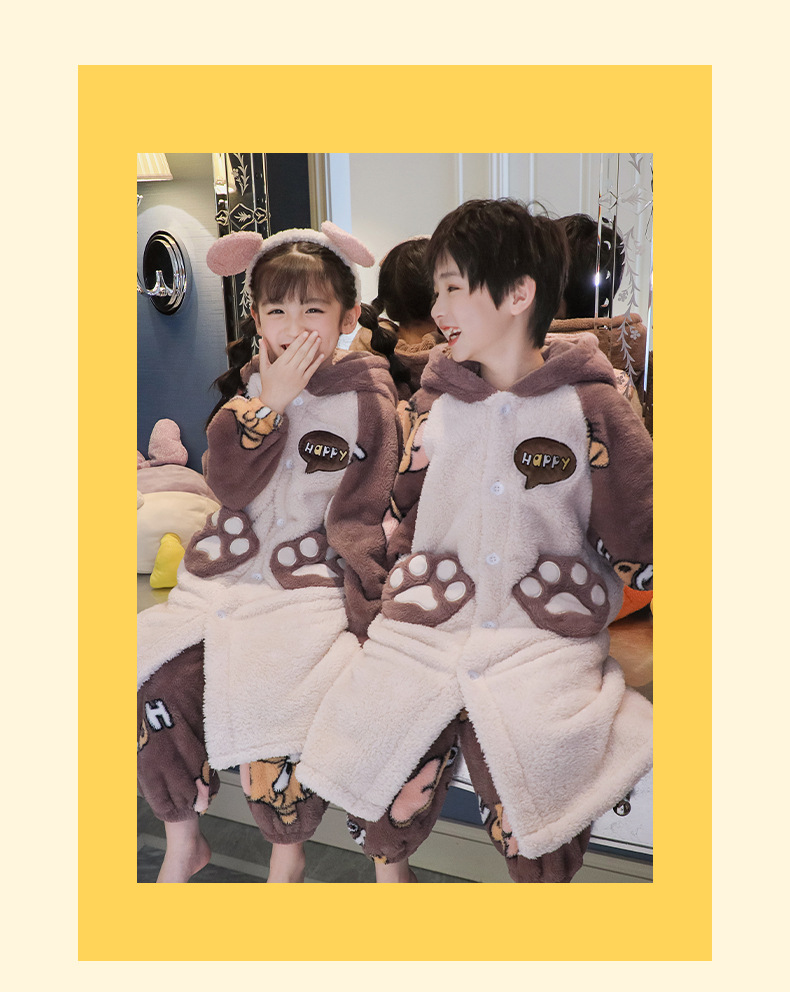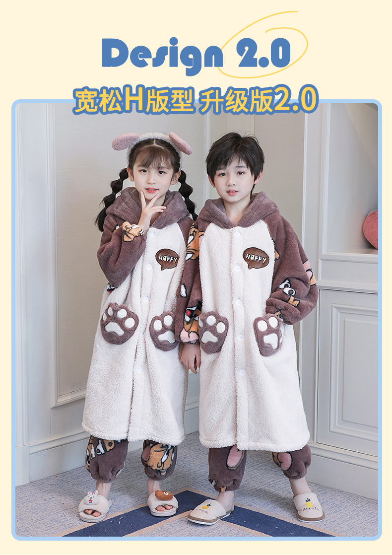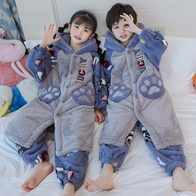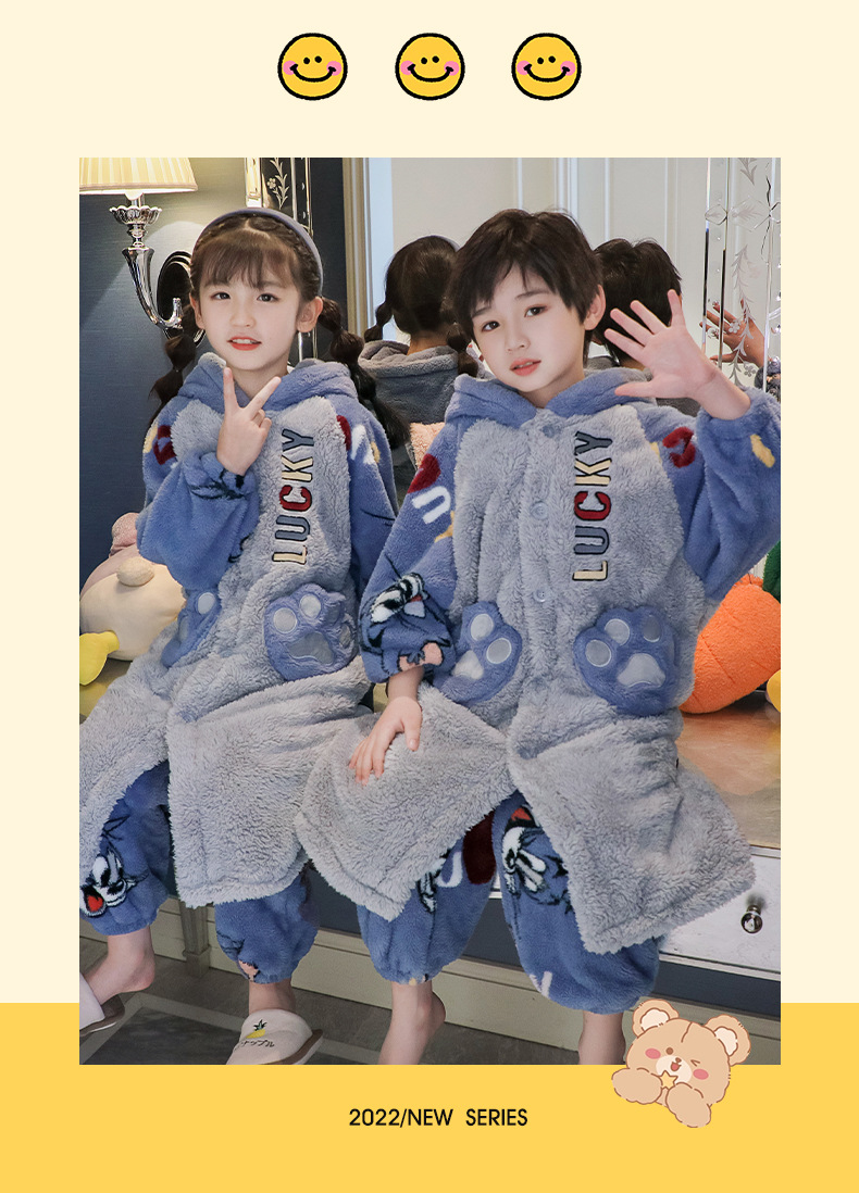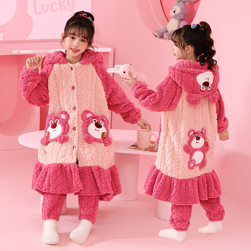 어린이 잠옷 겨울 두꺼운 산호 양털 소녀와 소녀 잠옷 학생 아기 플란넬 홈 옷 목욕 가운