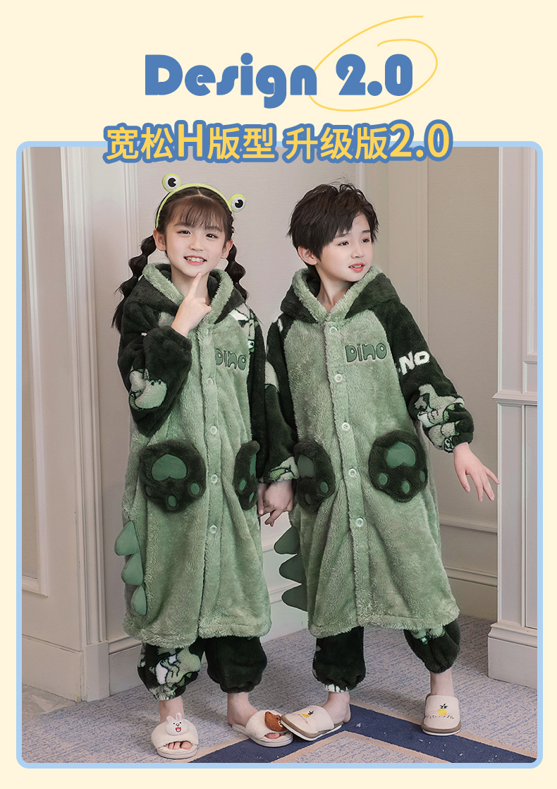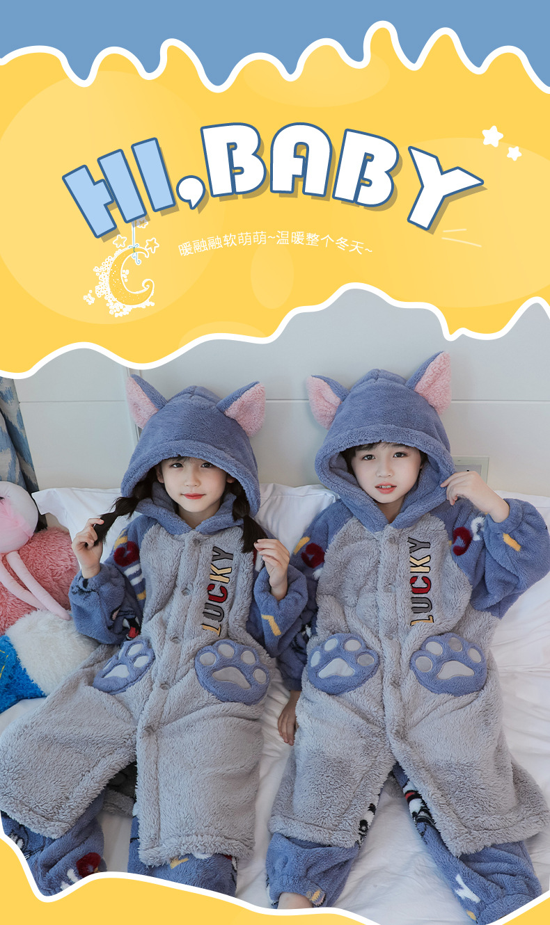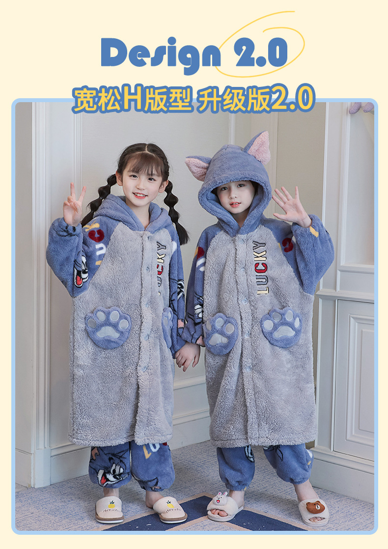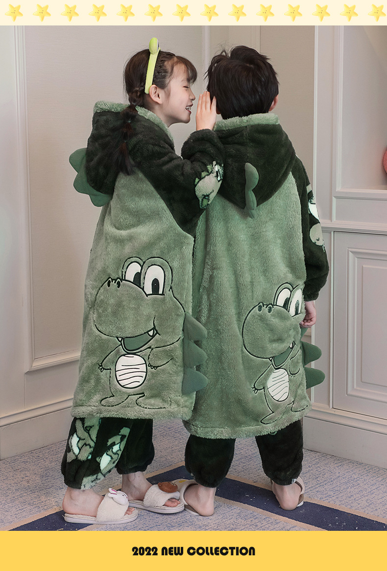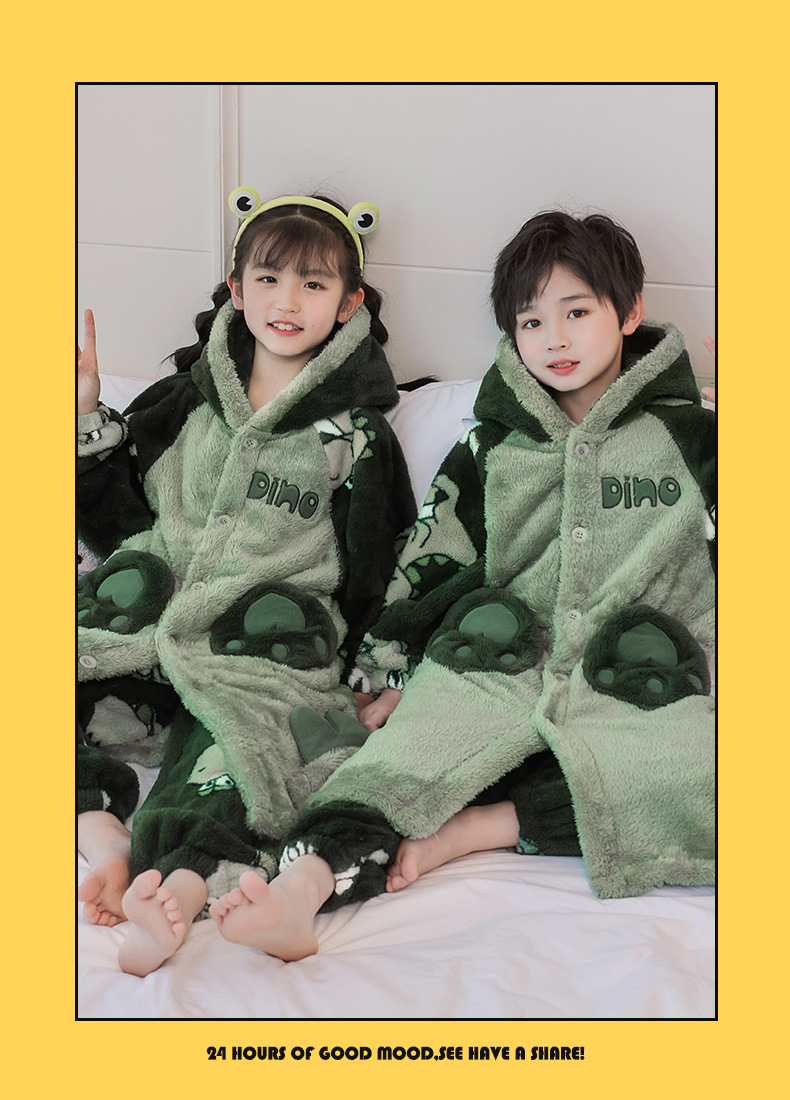 어린이 잠옷 겨울 두꺼운 산호 양털 소녀와 소녀 잠옷 학생 아기 플란넬 홈 옷 목욕 가운