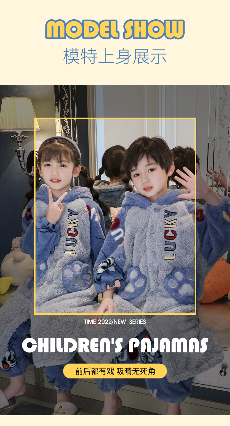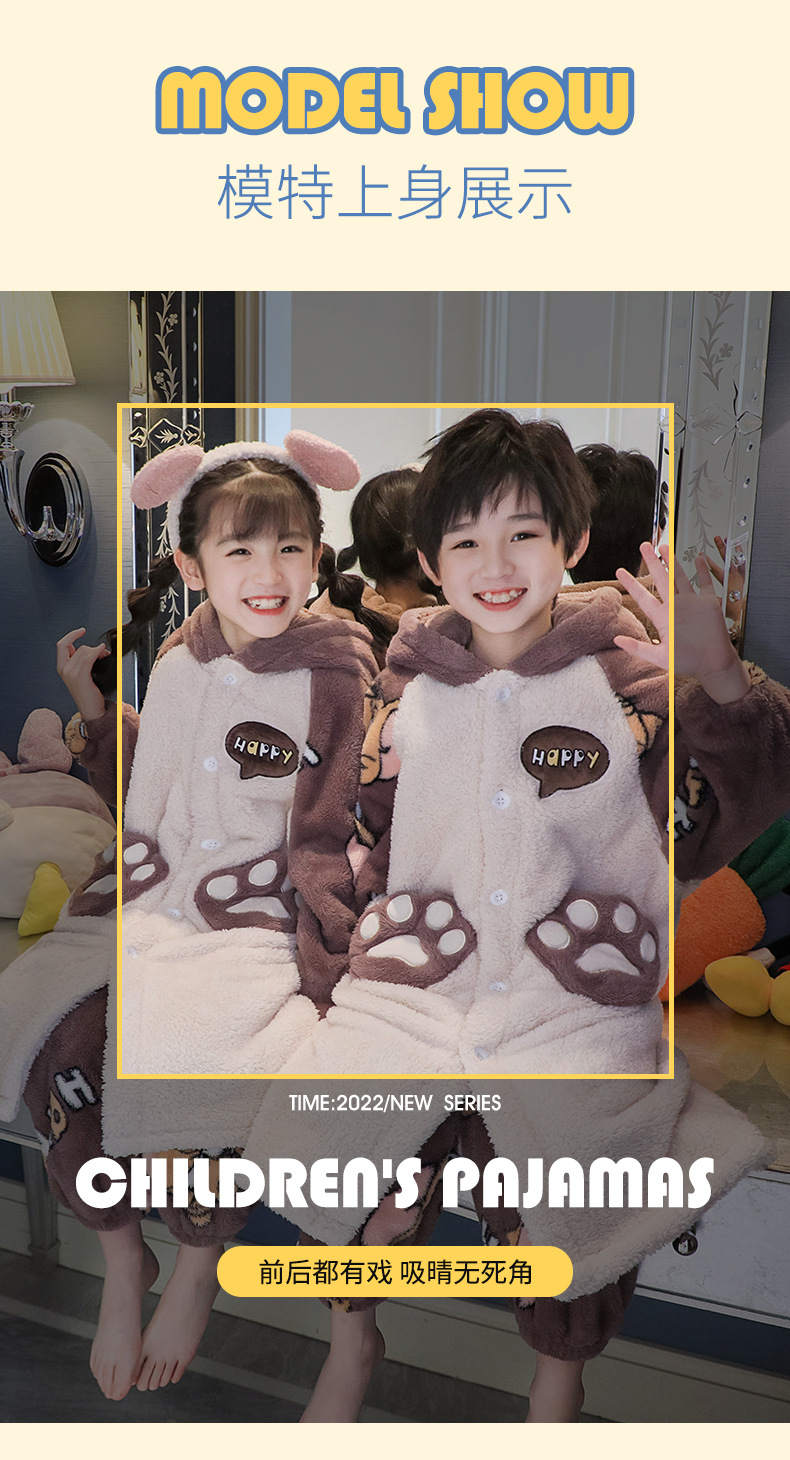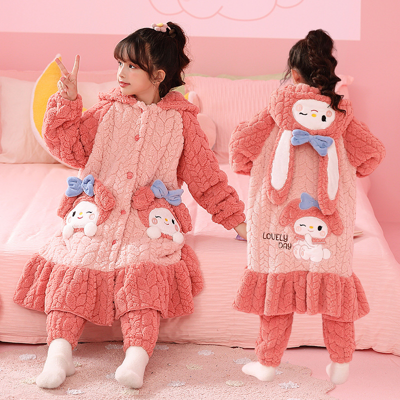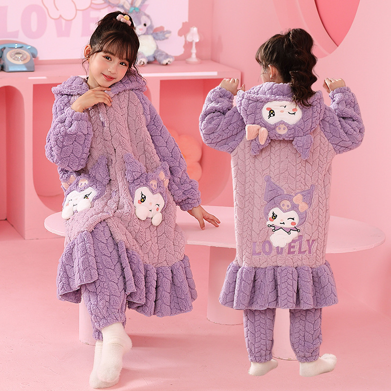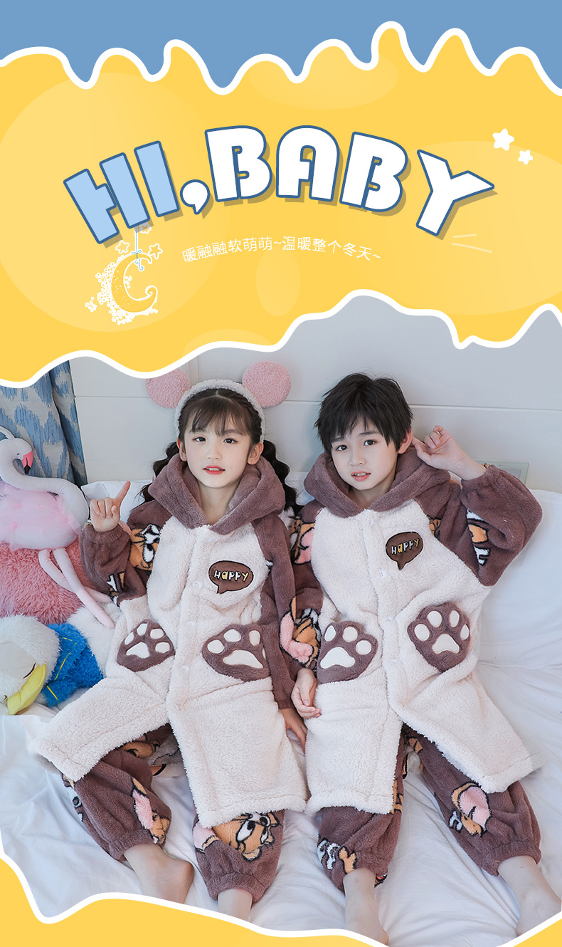 어린이 잠옷 겨울 두꺼운 산호 양털 소녀와 소녀 잠옷 학생 아기 플란넬 홈 옷 목욕 가운