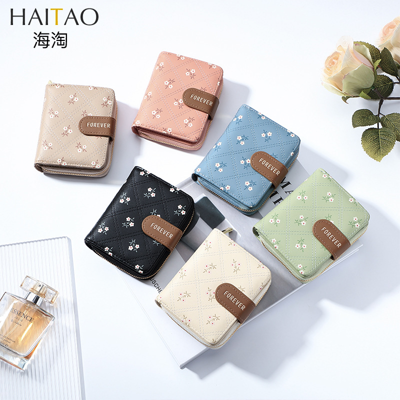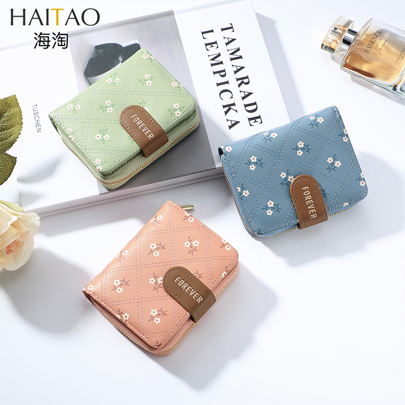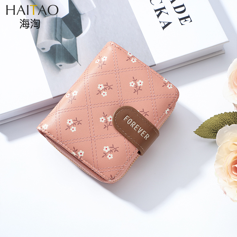새로운 Haitao 가방 버튼 지갑 여성의 간단한 인쇄 지갑 여성용 지갑 크로스 보더 여성용 지갑 짧은스토어 가기