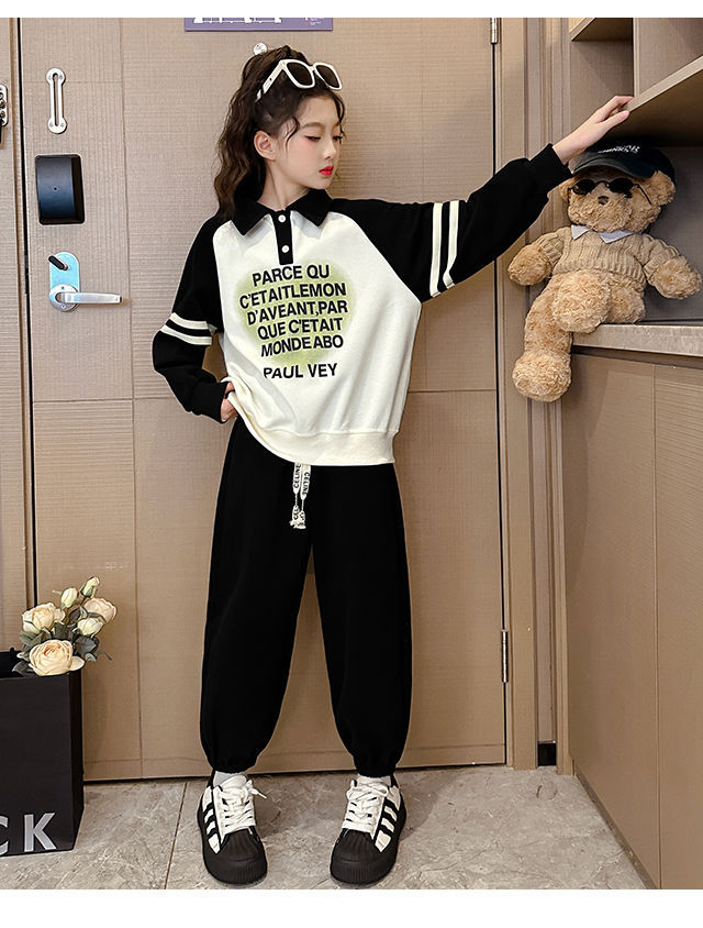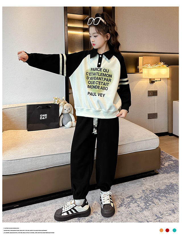 소녀의 봄 세트 2024 새로운 봄과 가을 어린이 서양식 트렌디 한 아동복 어린 소녀의 운동복 봄 세트스토어 가기