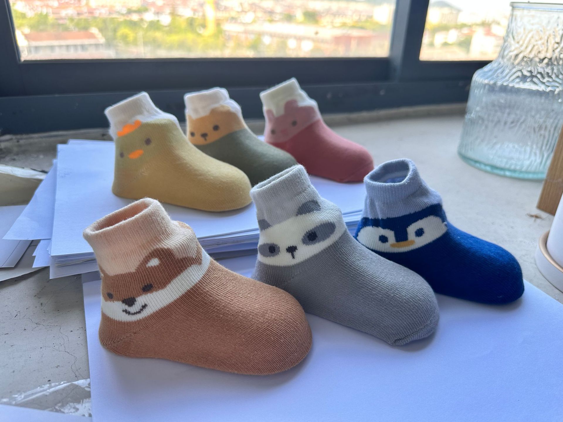 가을, 겨울 실내 미끄럼 방지 만화 아기 소년과 소녀 바닥 양말 전체 바닥 접착제 유형 면화 아기 양말 귀여운