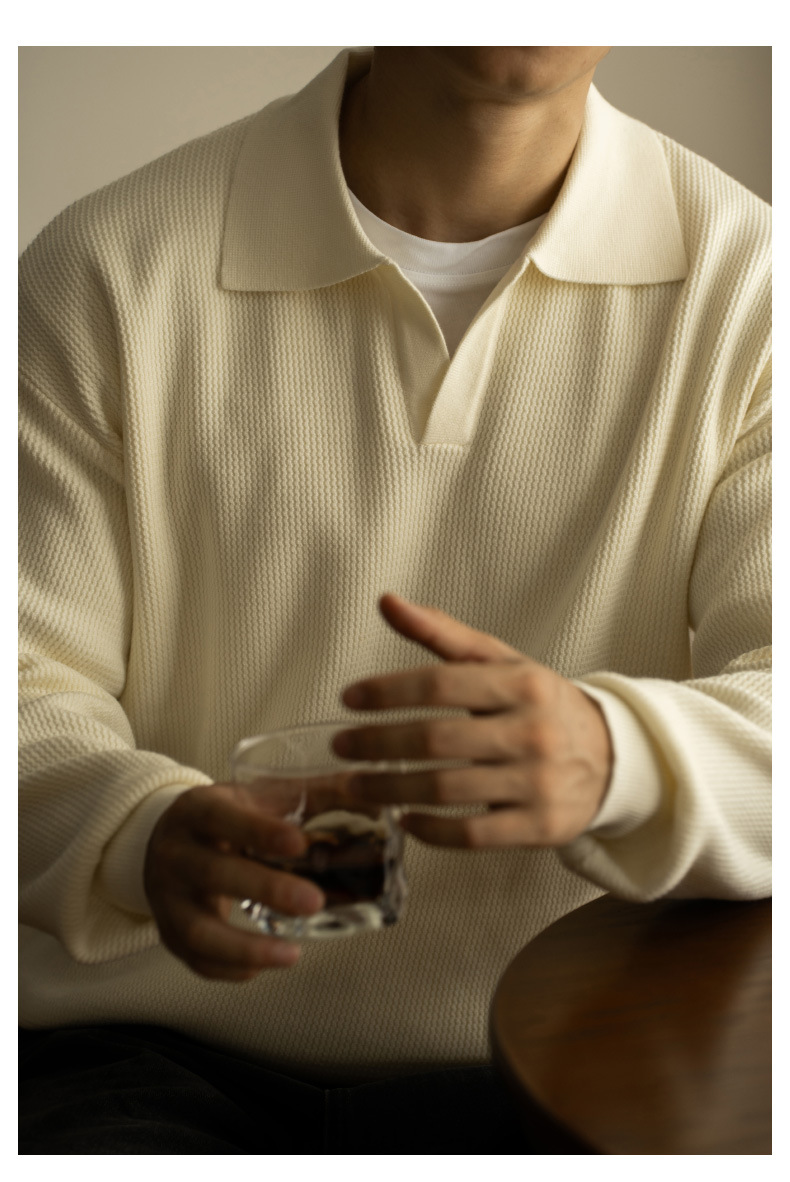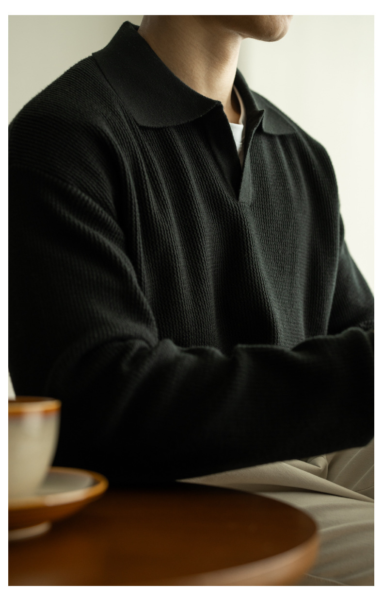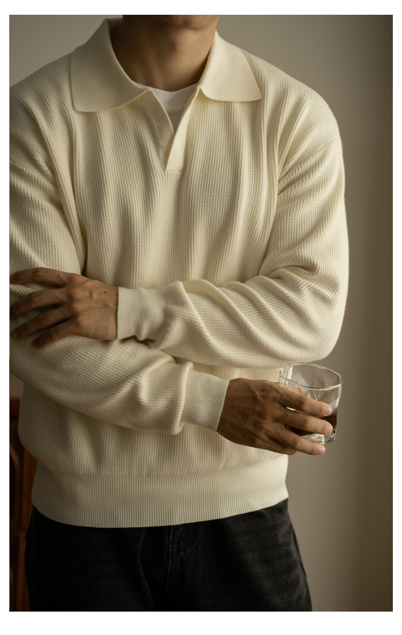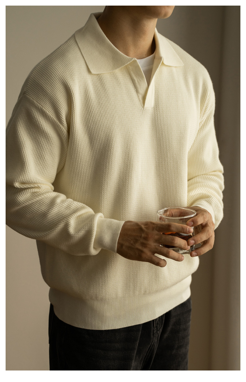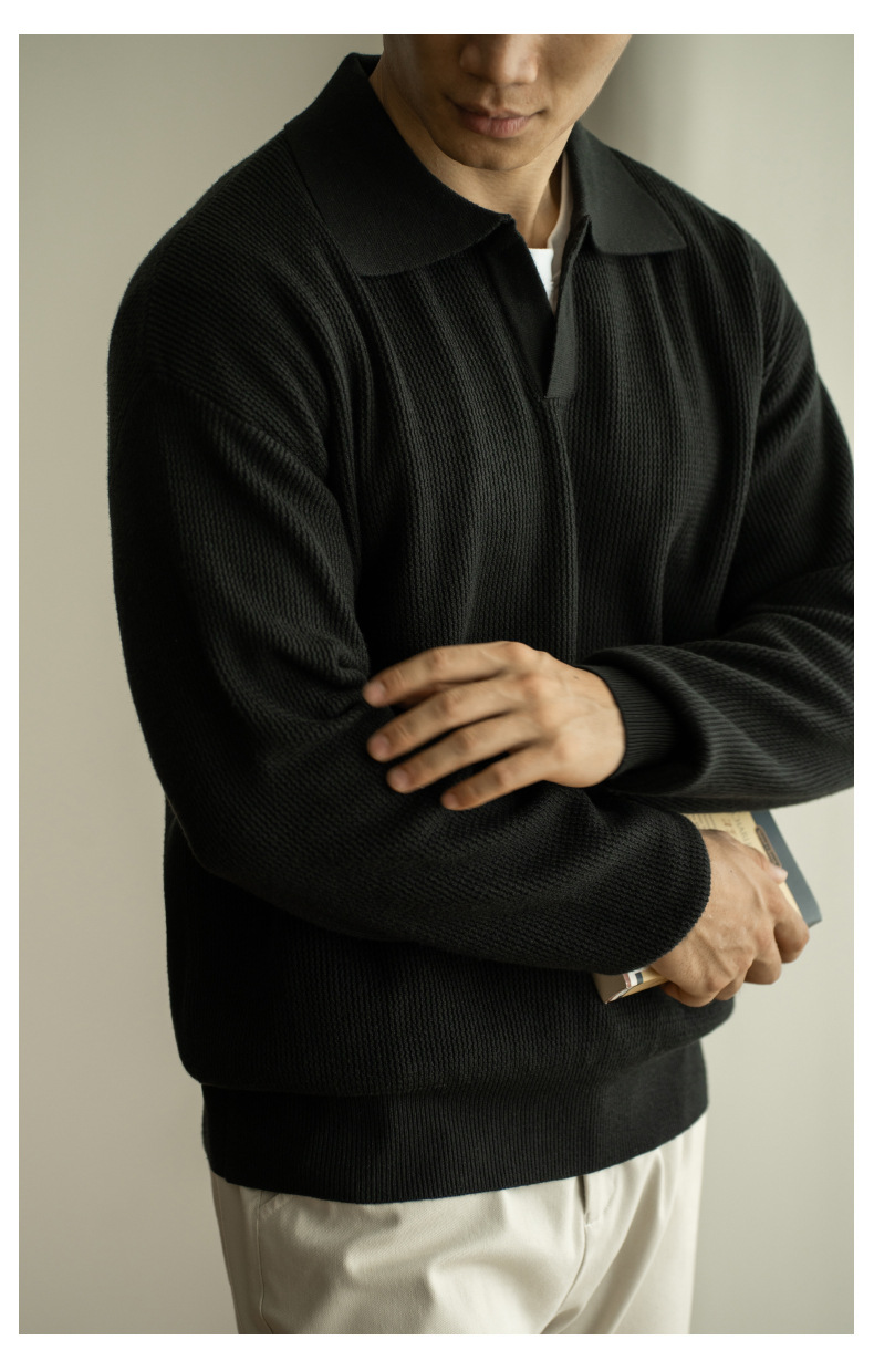 SONGNAN 가을 브이넥 스웨터 풀오버 원사 염색 라펠 남성 폴로 셔츠 긴팔 헤비급 가볍고 성숙한 스타일