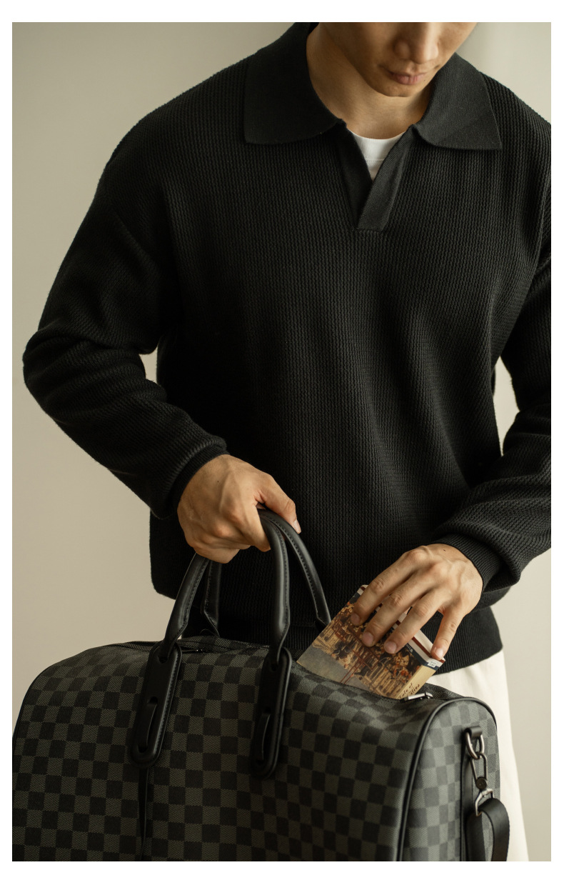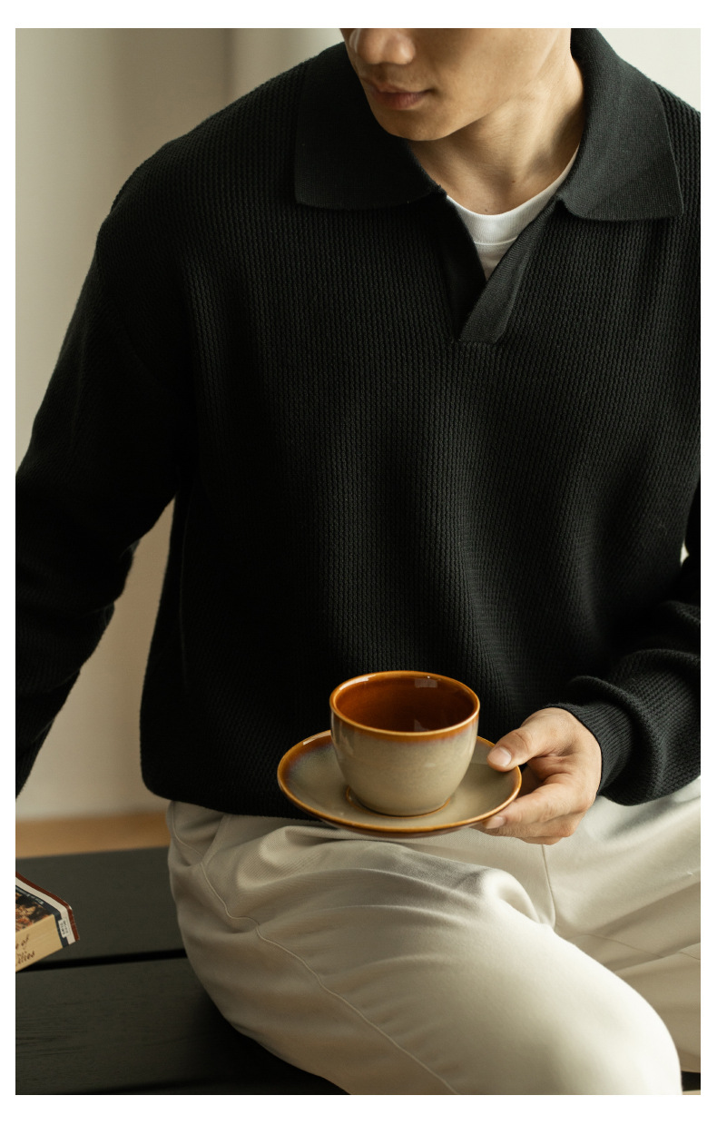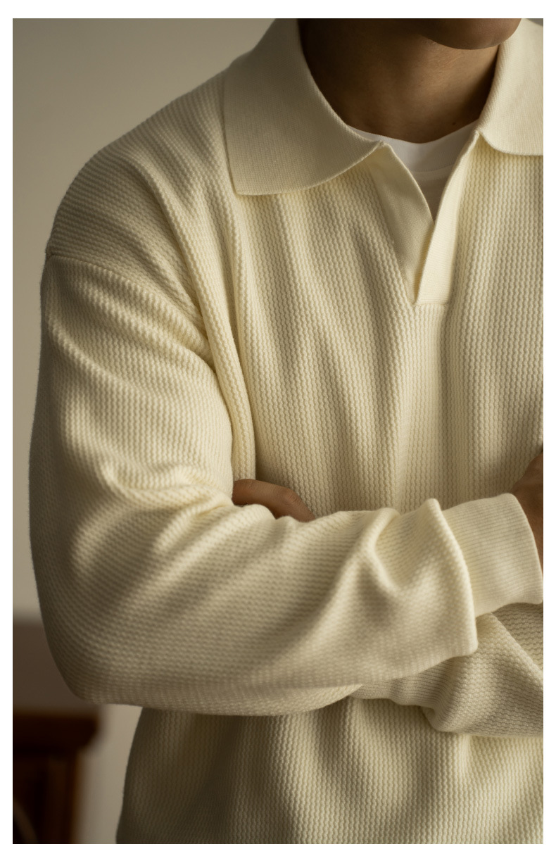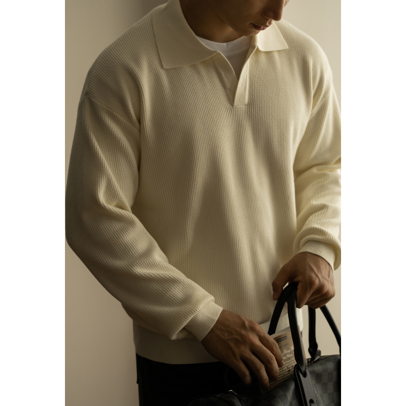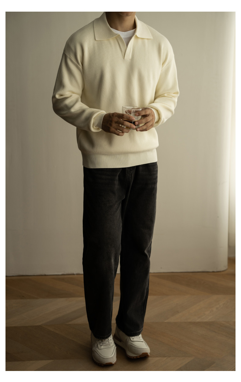 SONGNAN 가을 브이넥 스웨터 풀오버 원사 염색 라펠 남성 폴로 셔츠 긴팔 헤비급 가볍고 성숙한 스타일