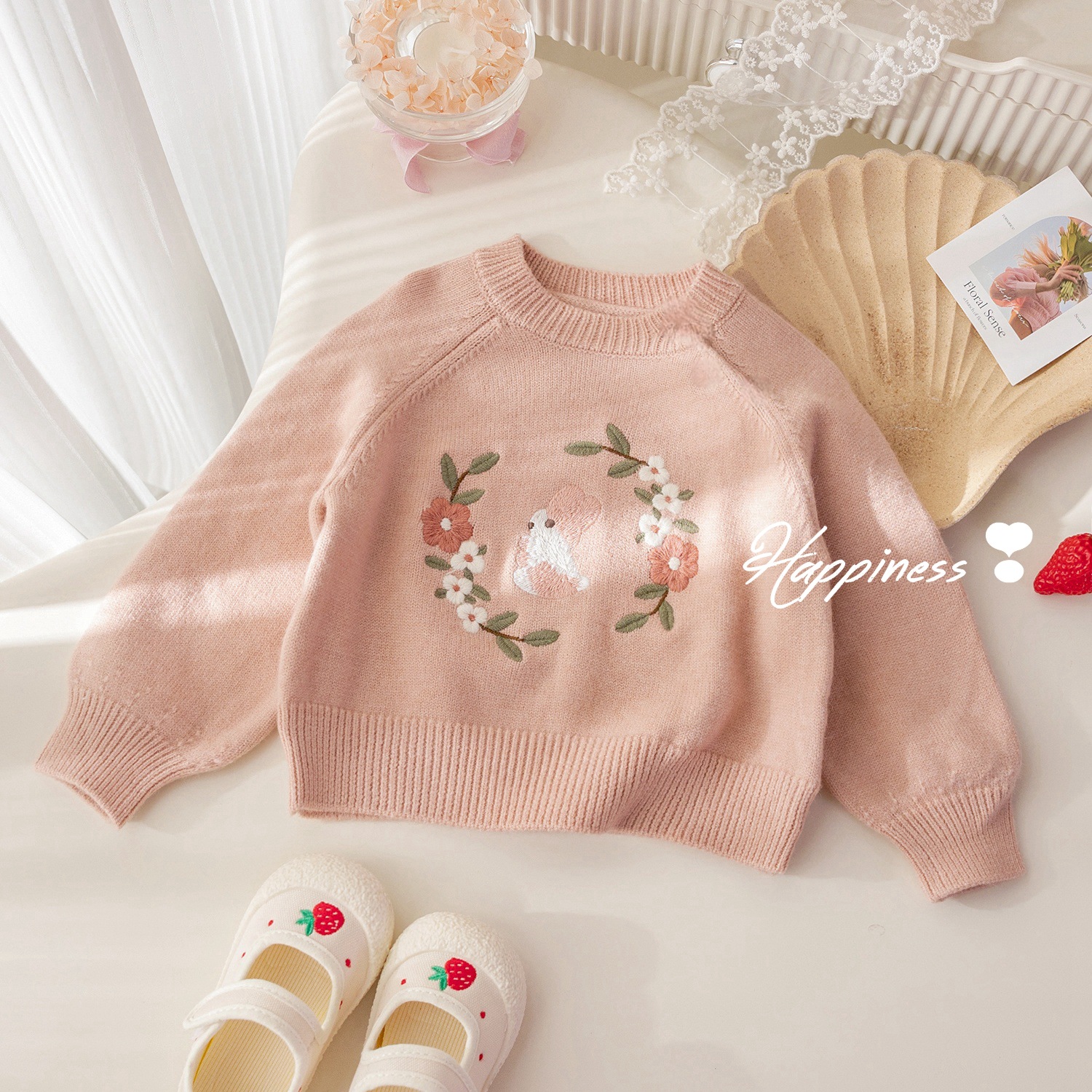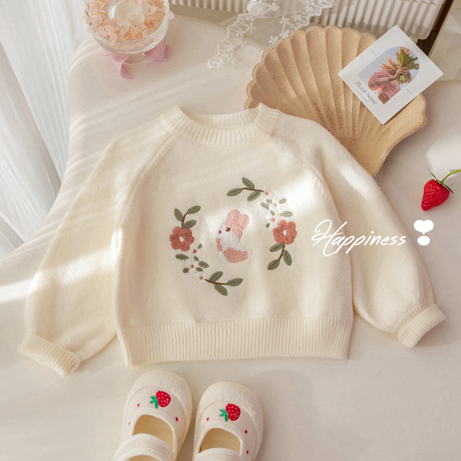 여자 귀여운 토끼 수 놓은 스웨터 봄과 가을 새로운 달콤한 다목적 풀오버 스웨터 아기 소녀 가을 탑스토어 가기