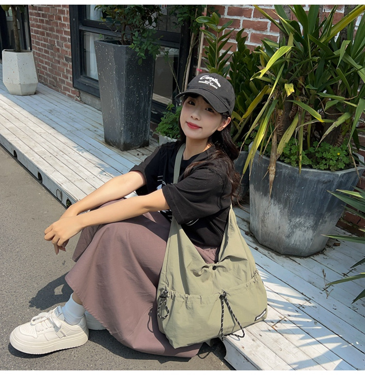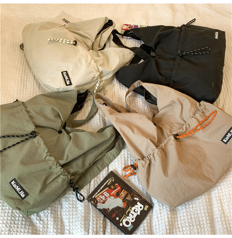 새로운 일본 청소년 드로스트링 크로스 바디 백 남녀 캐주얼 스포츠 대용량 어깨 가방 통근 경량 배낭 트렌디스토어 가기