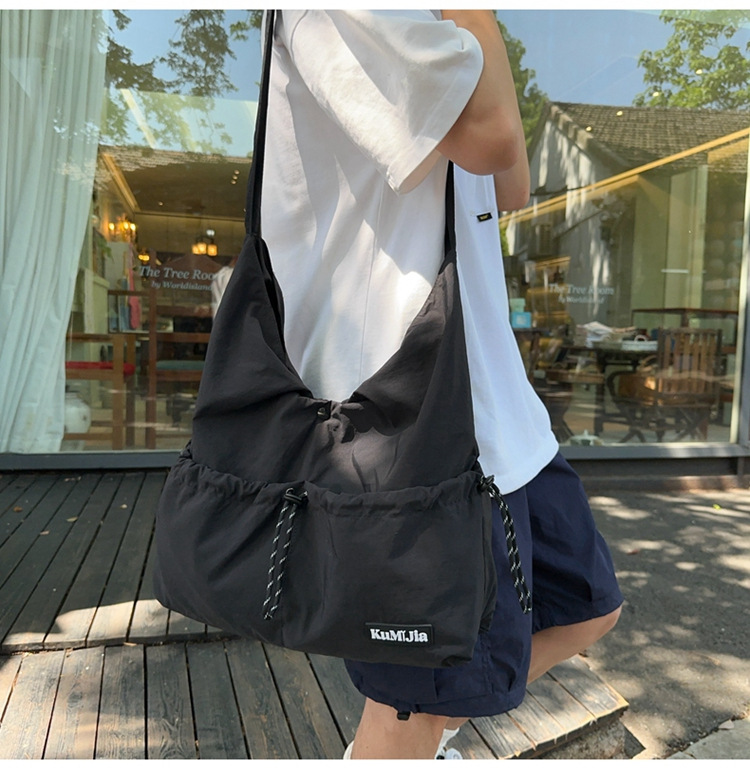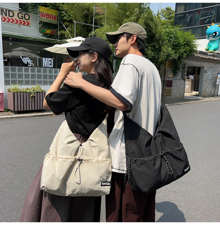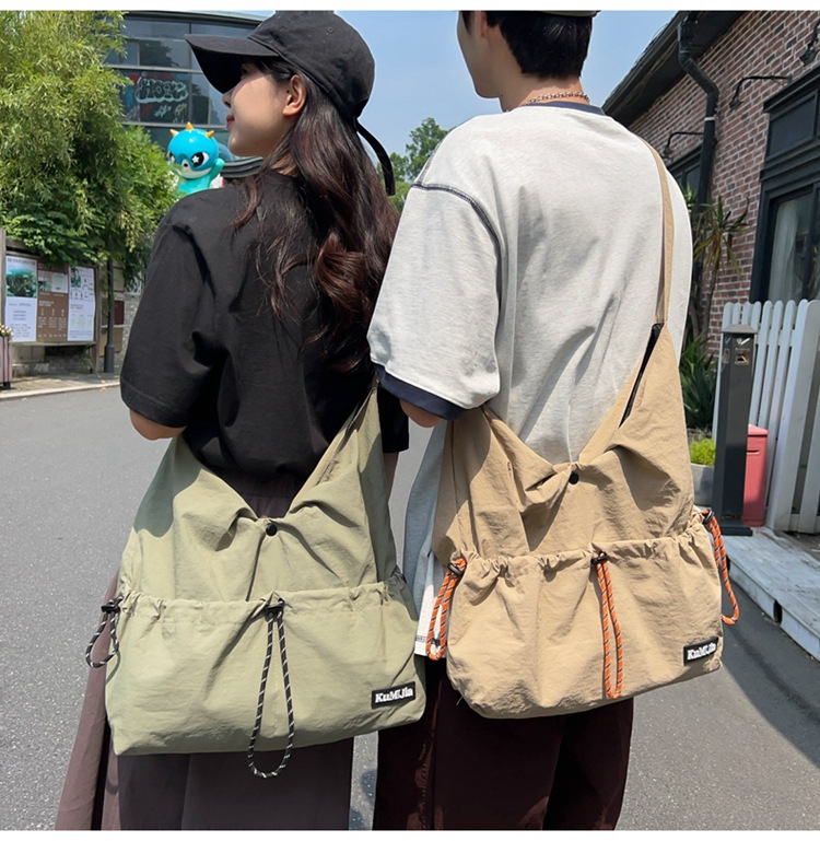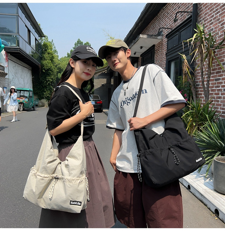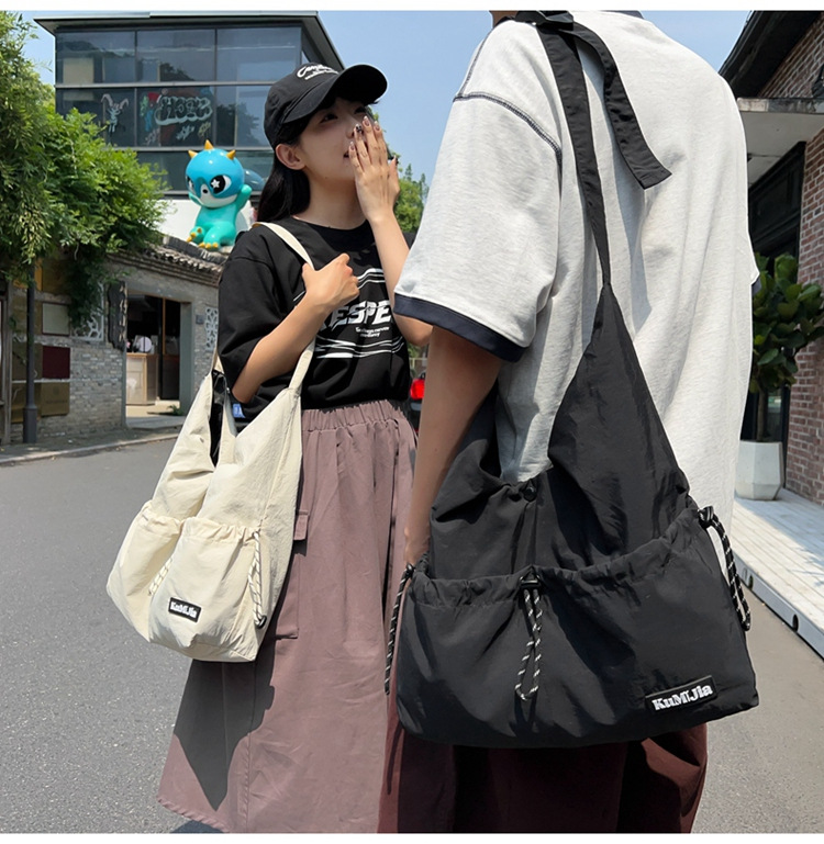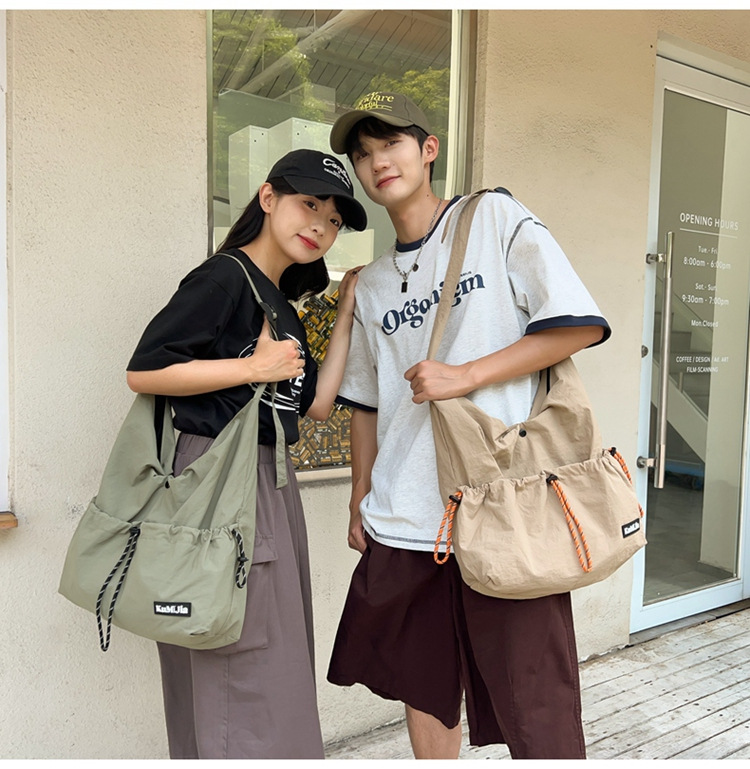 새로운 일본 청소년 드로스트링 크로스 바디 백 남녀 캐주얼 스포츠 대용량 어깨 가방 통근 경량 배낭 트렌디