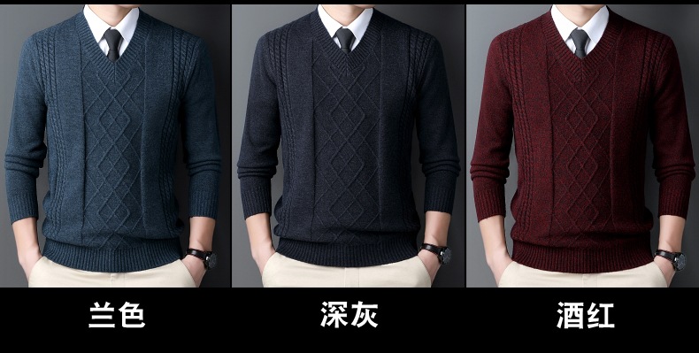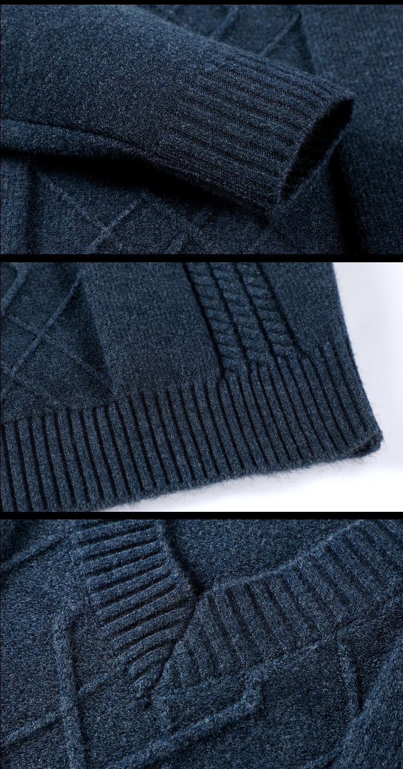 새로운 겨울 남자 치킨 하트 칼라 터틀넥 니트웨어 캐주얼 자카드 레트로 남성용 따뜻한 V 넥 스웨터베이스 셔츠스토어 가기