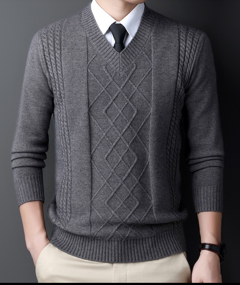 새로운 겨울 남자 치킨 하트 칼라 터틀넥 니트웨어 캐주얼 자카드 레트로 남성용 따뜻한 V 넥 스웨터베이스 셔츠