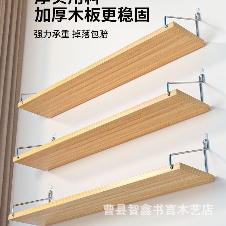 나무 벽걸이 선반 거실용 일자형 선반 무타공 벽면 책장 나무 플로팅 선반스토어 가기