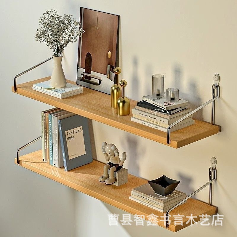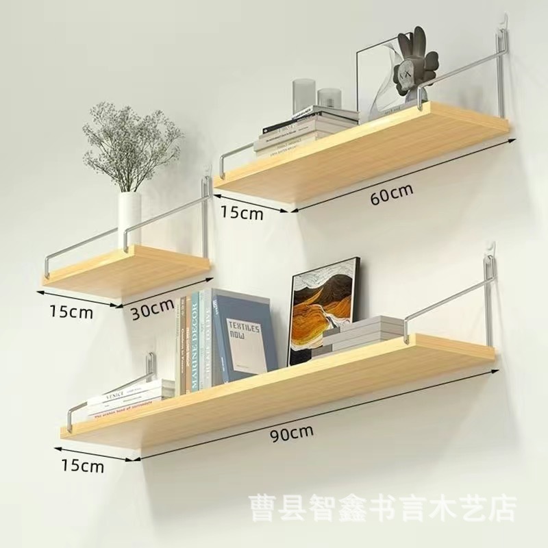 나무 벽걸이 선반 거실용 일자형 선반 무타공 벽면 책장 나무 플로팅 선반