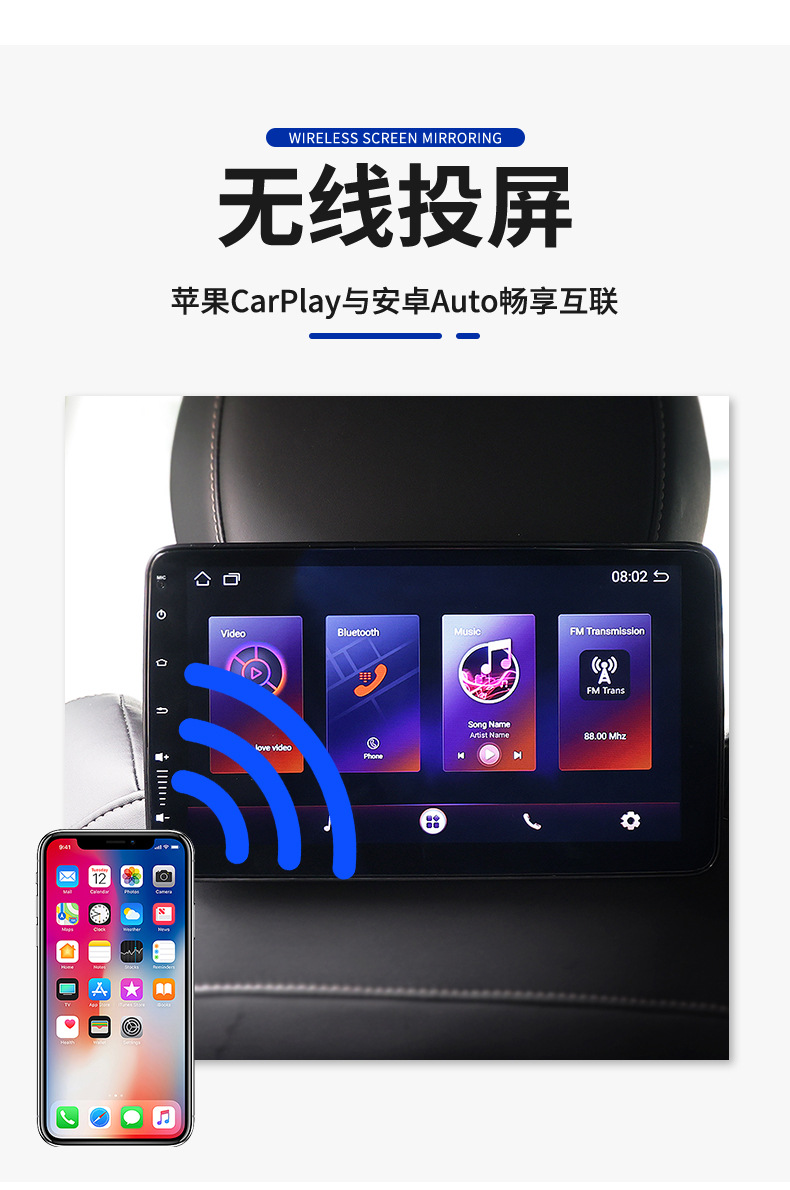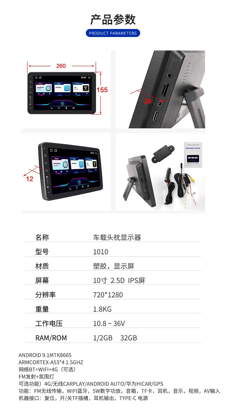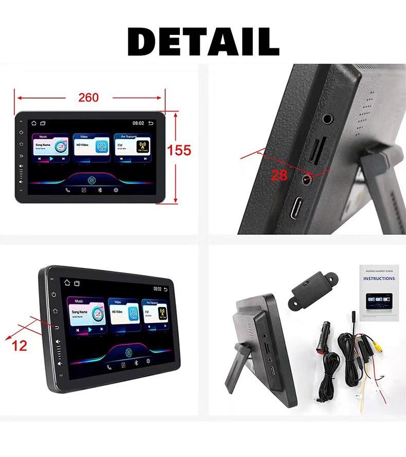 10inch 국경 간 새로운 안드로이드 외부 장착형 자동차 머리 받침 모니터 디스플레이 자동차 경량 화질 고화질 디스플레이스토어 가기