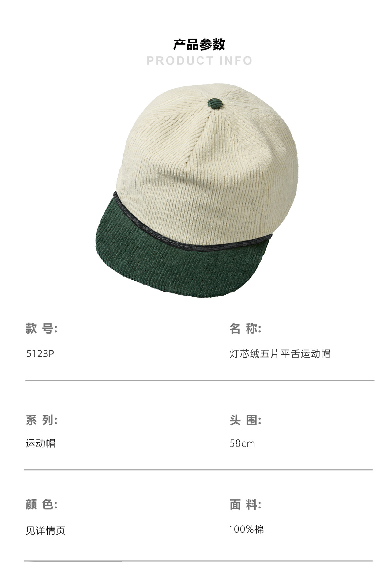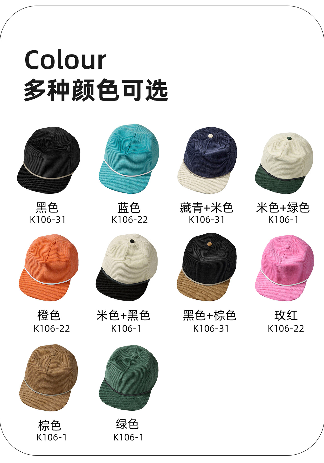 【재고 있음】해외 인기 상품, 로프 장식, 문예 레트로 스타일, 5피스 코듀로이 소프트탑 플랫 챙 야구 모자