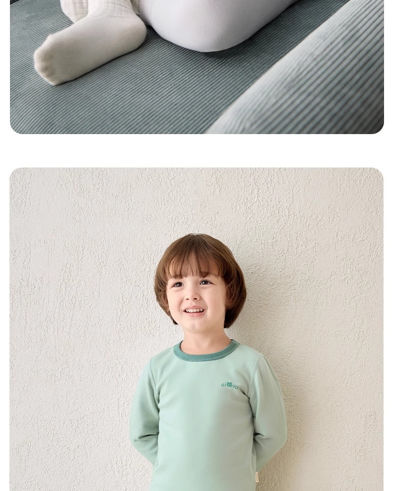 니도베어 가을 겨울 신상 아동용 보온 내의 세트 남아 여아용 두꺼운 독일산 벨벳