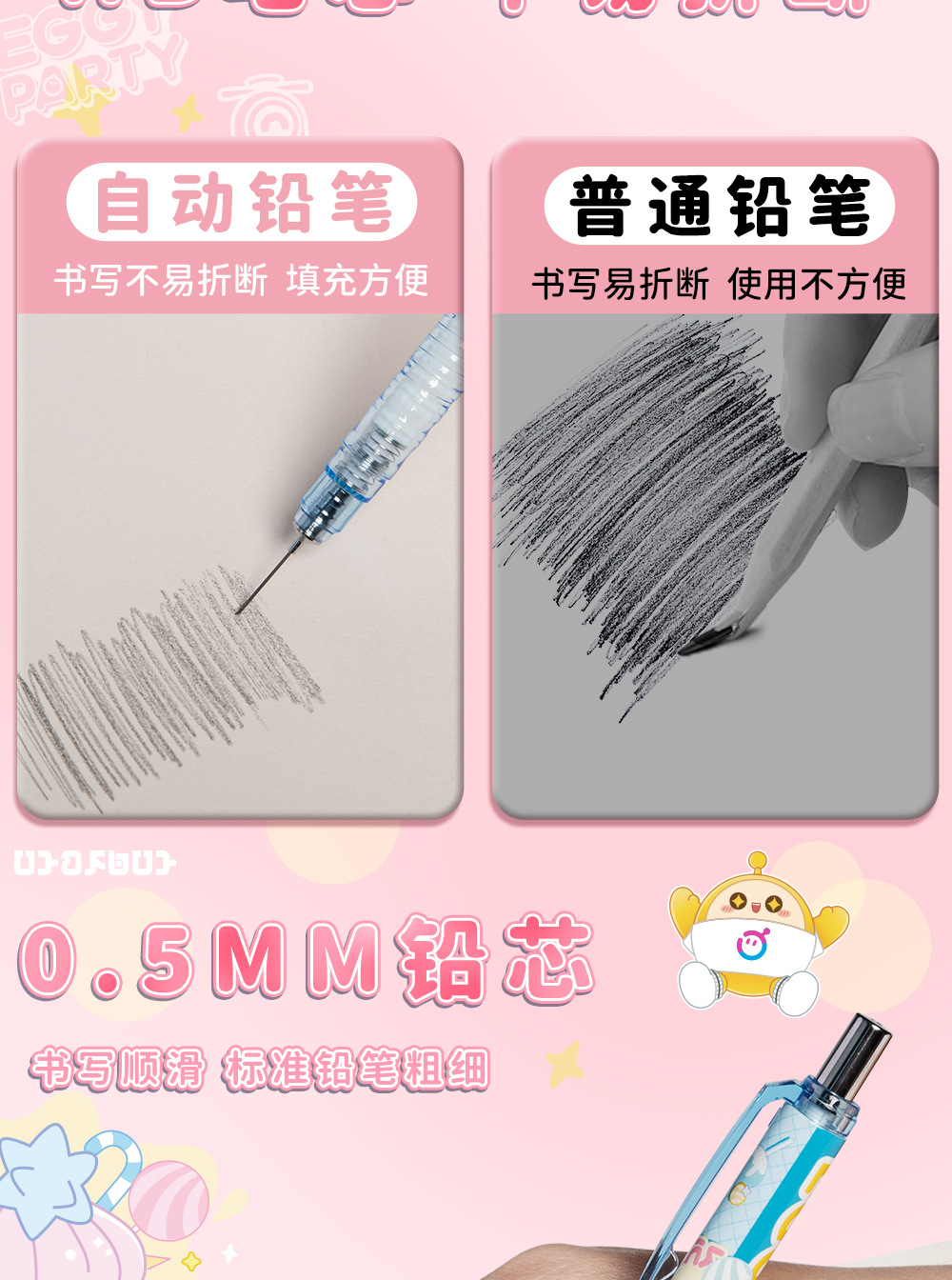 Mai 및 정품 합동 계란 파티 학생들은 1 학년 및 2 학년을 위한 0.5mm 기계식 연필을 누르십시오스토어 가기