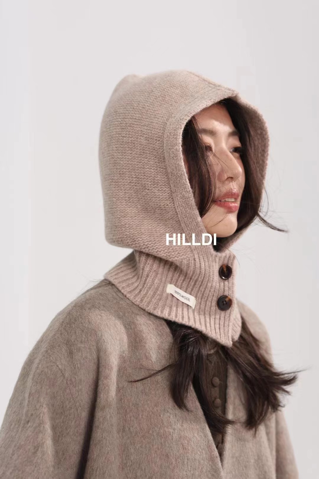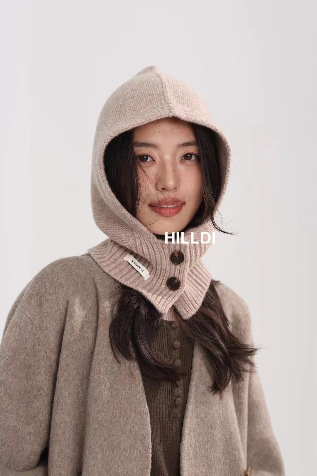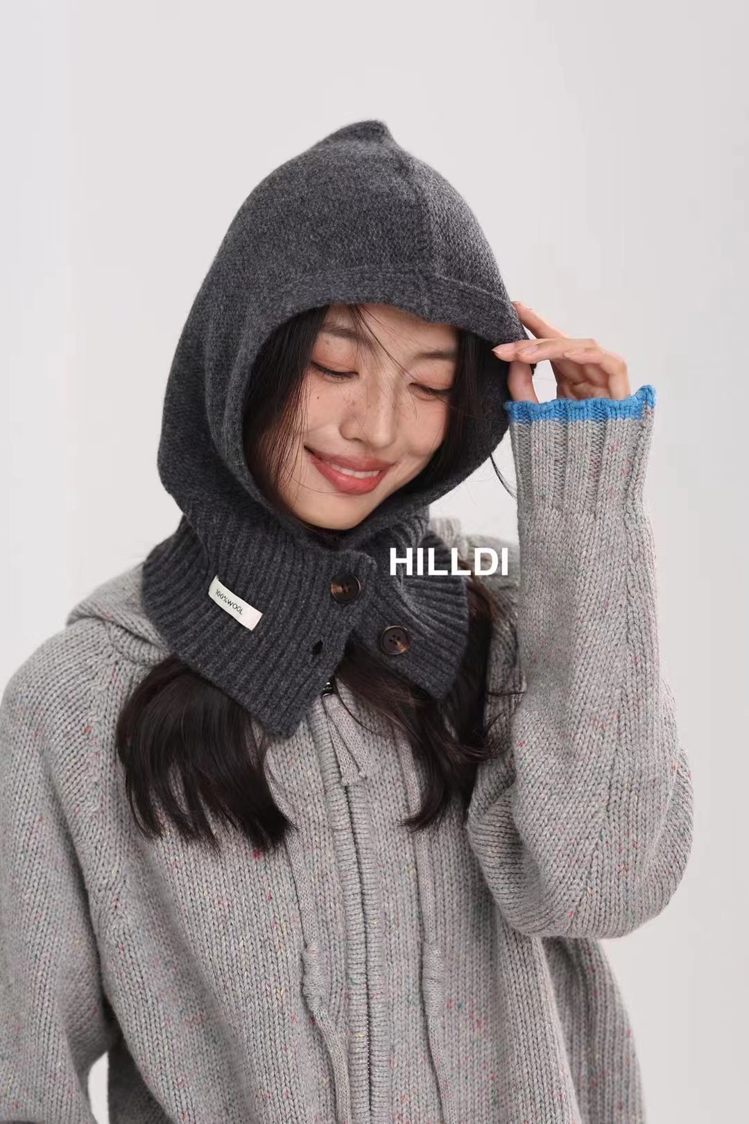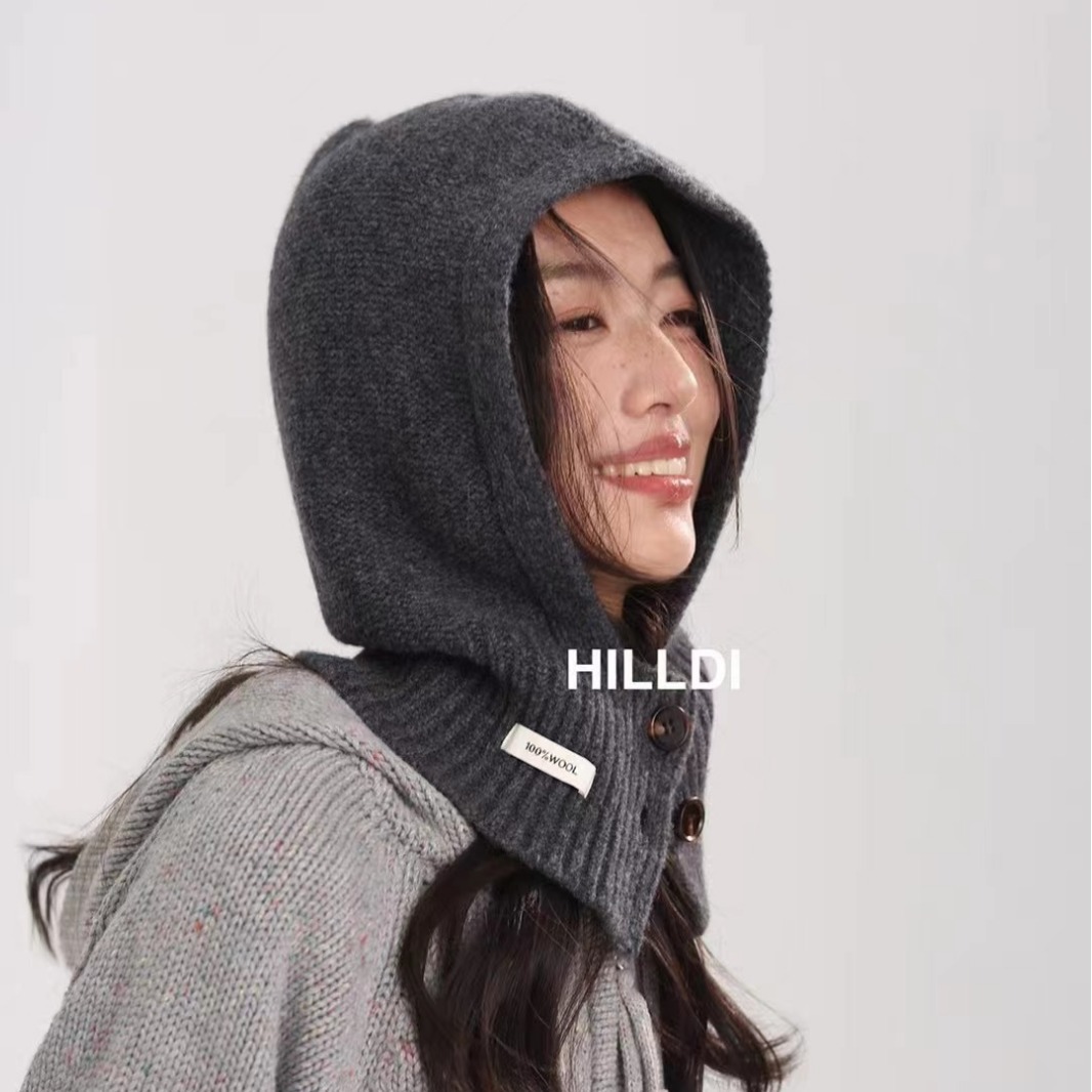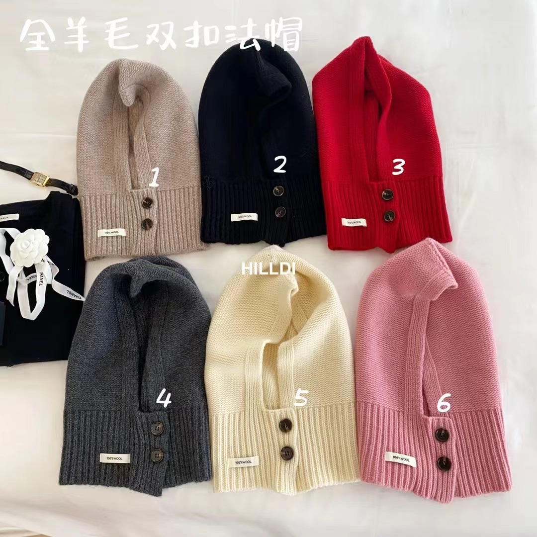 2024 새로운 겨울 얼굴 작은 서양 스타일 니트 100 울 풀오버 모자 발라 클라 바 모자 한국 스타일