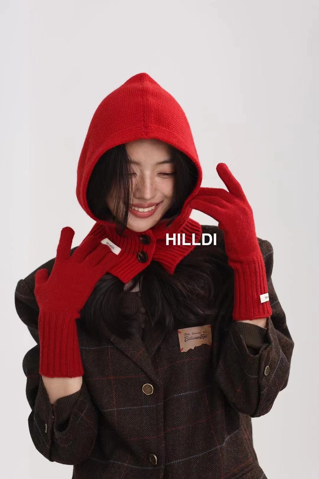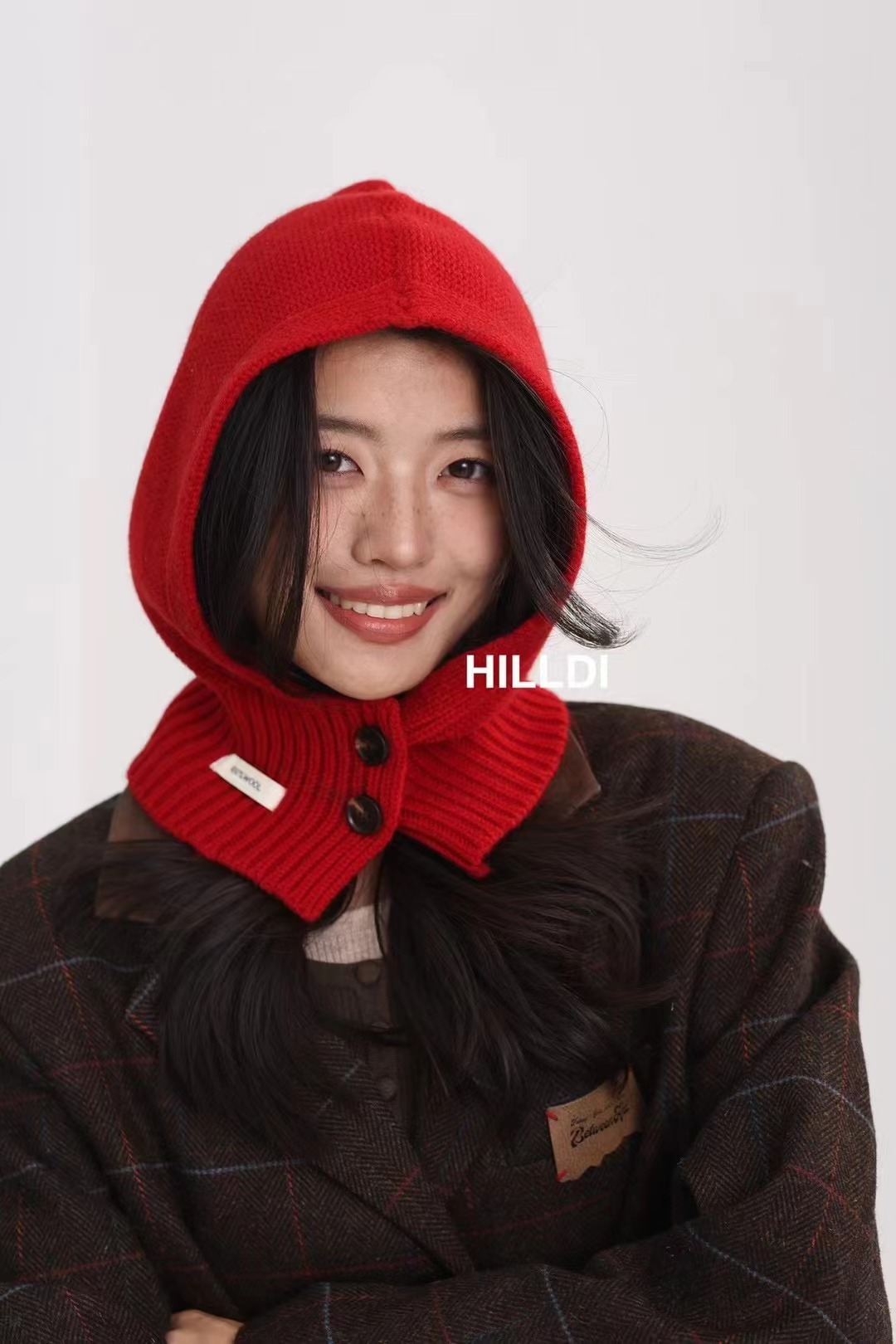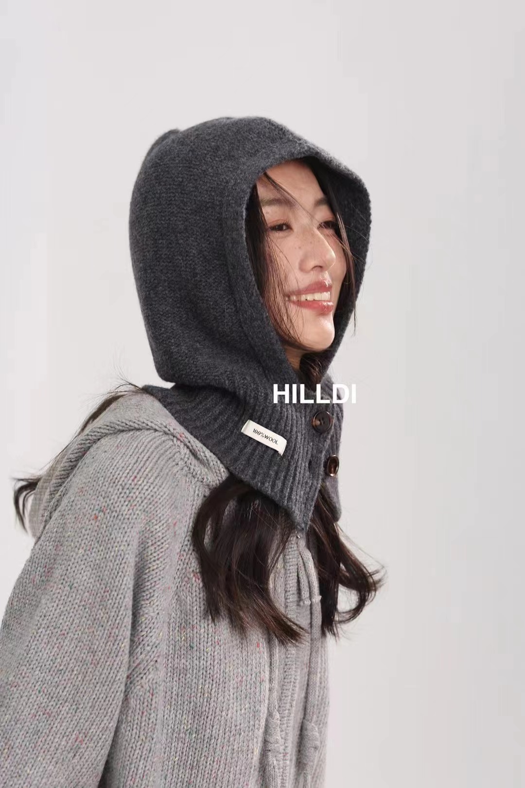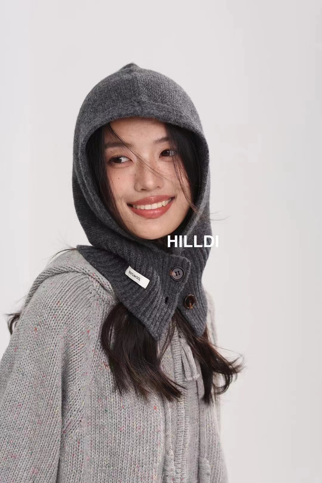 2024 새로운 겨울 얼굴 작은 서양 스타일 니트 100 울 풀오버 모자 발라 클라 바 모자 한국 스타일