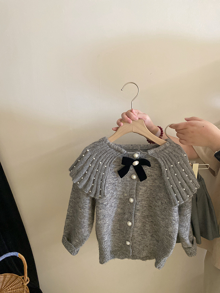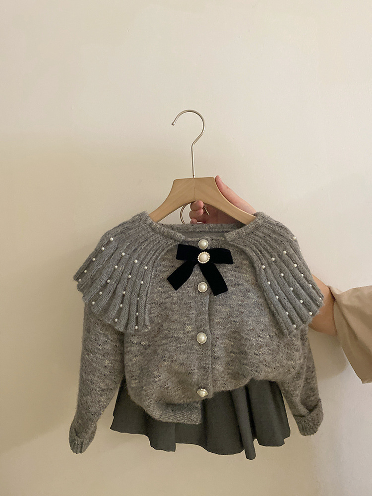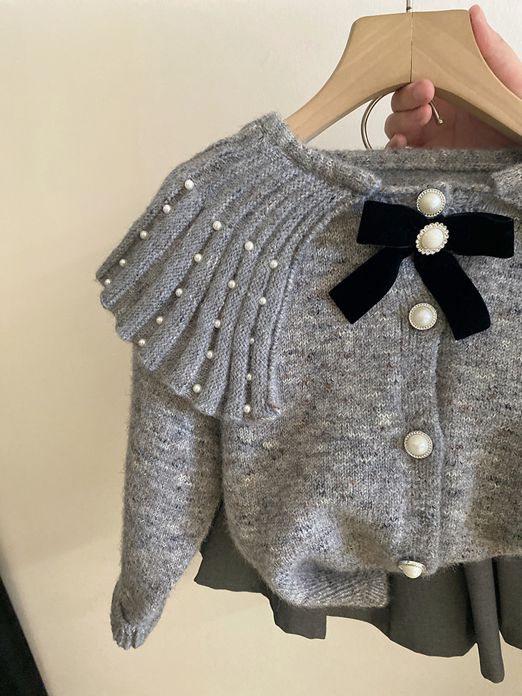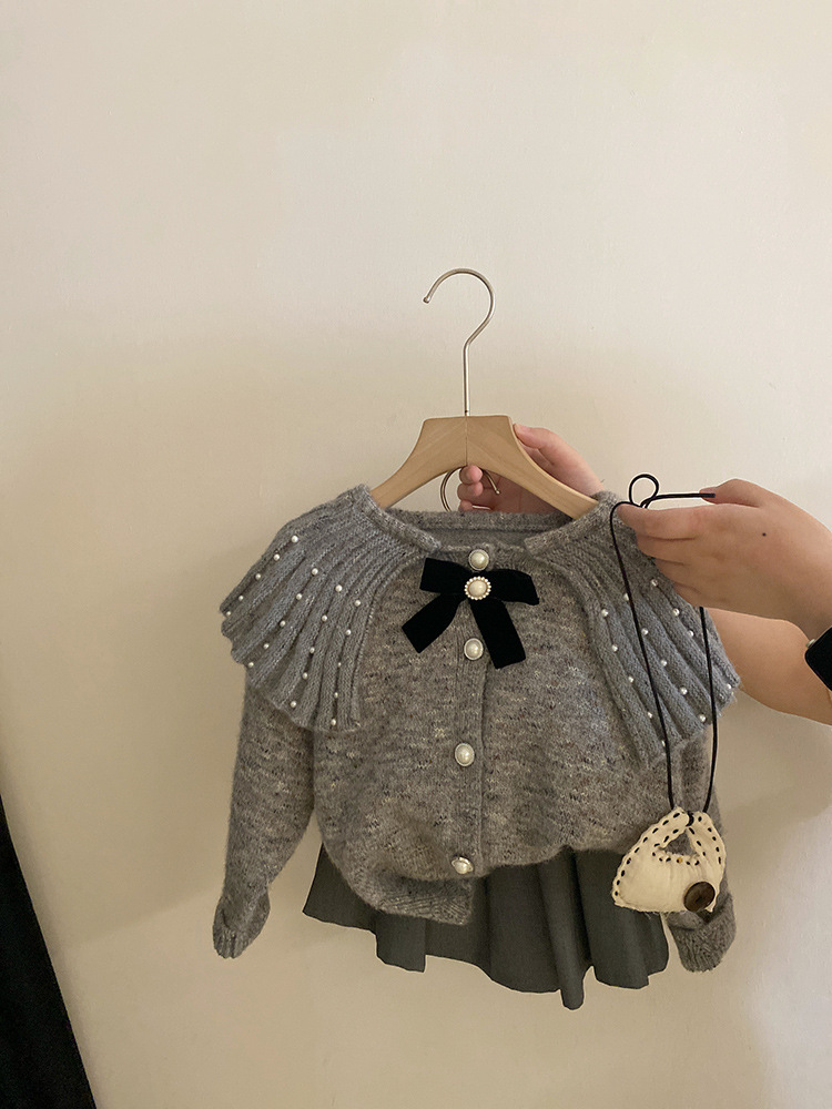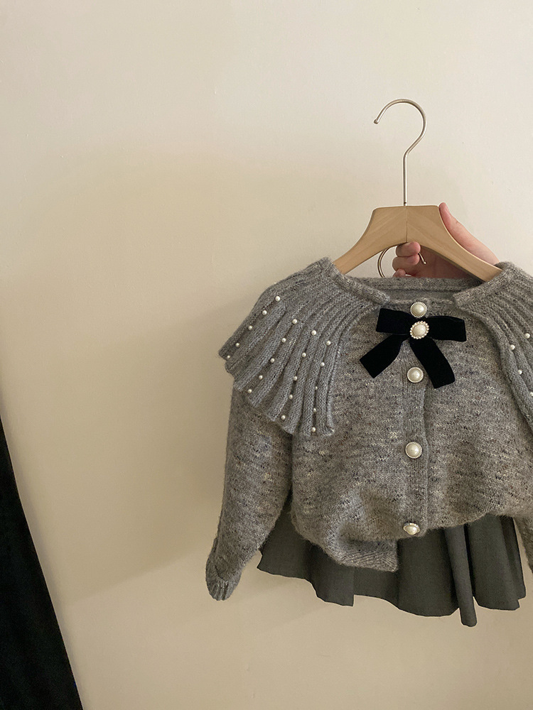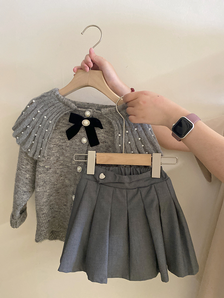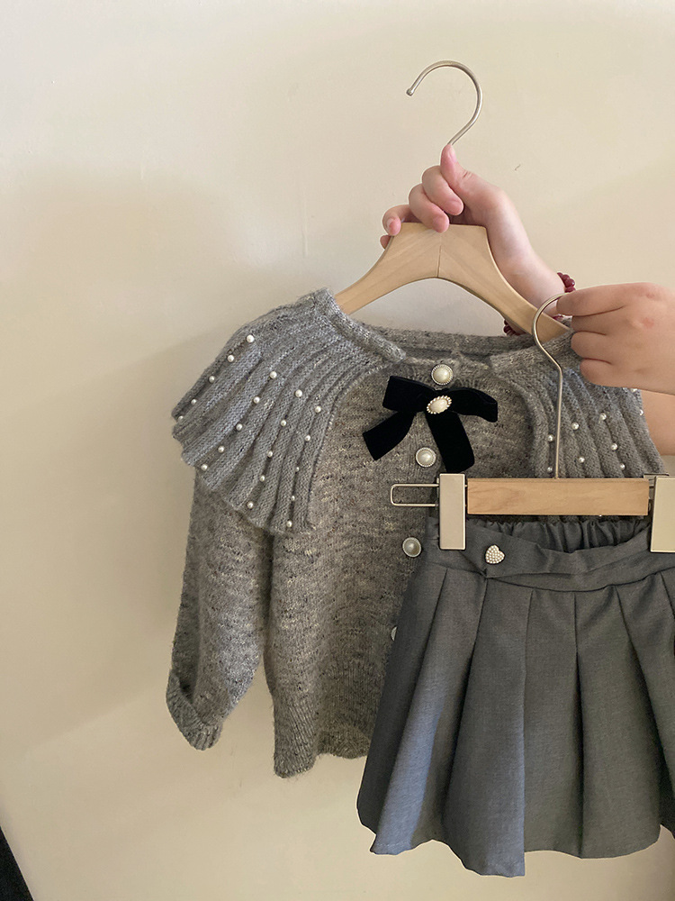 한국 스타일 우아한 목도리 진주 칼라 활 니트 카디건 스웨터 대학 스타일 주름 치마 가을 패션 세트스토어 가기