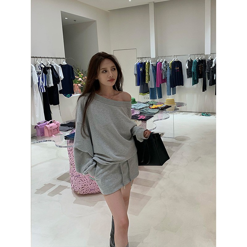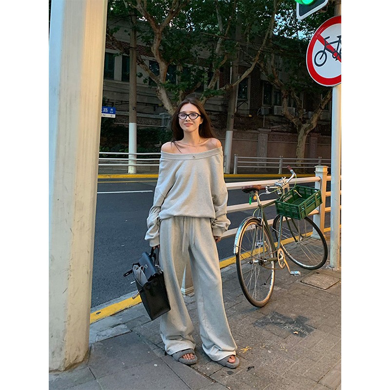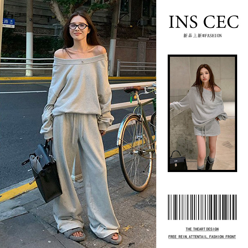 이른 가을 새로운 패션 세트 긴 소매 캐주얼 올 매치 어깨 게으른 우아한 스웨트 셔츠 세트스토어 가기
