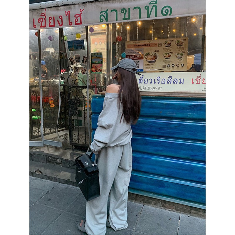 이른 가을 새로운 패션 세트 긴 소매 캐주얼 올 매치 어깨 게으른 우아한 스웨트 셔츠 세트