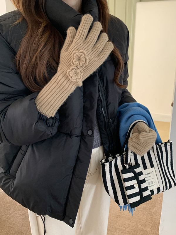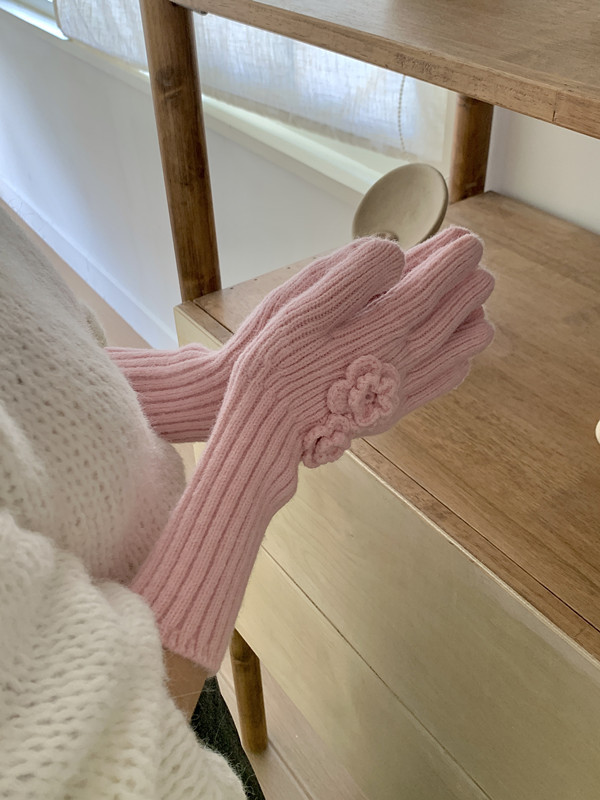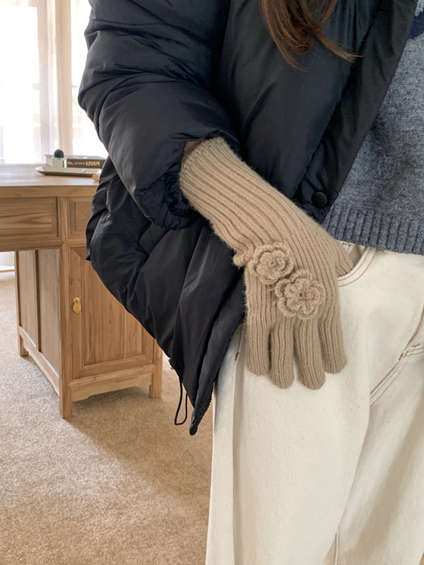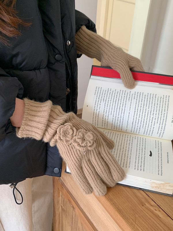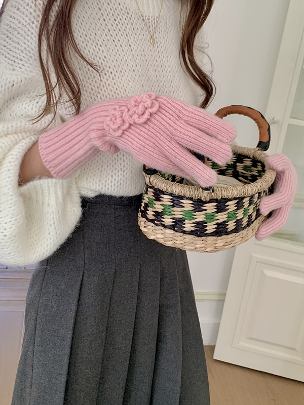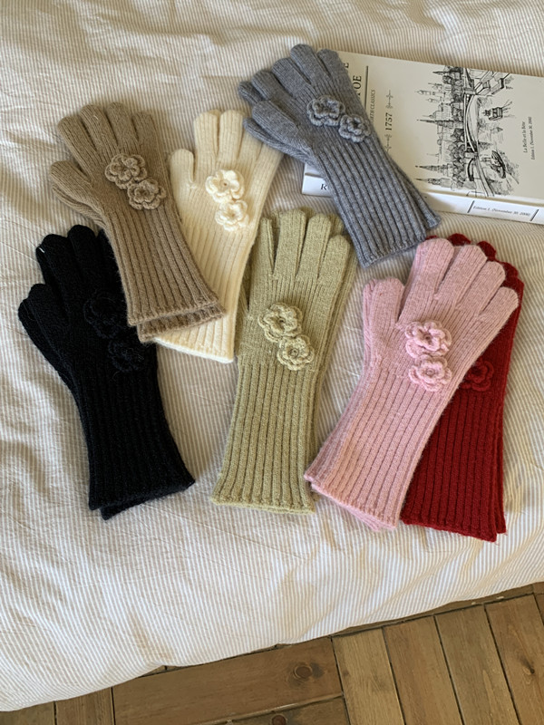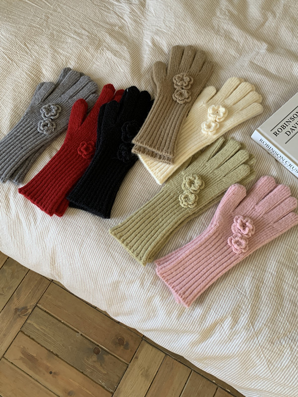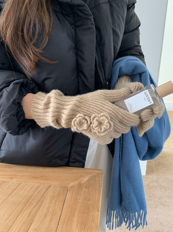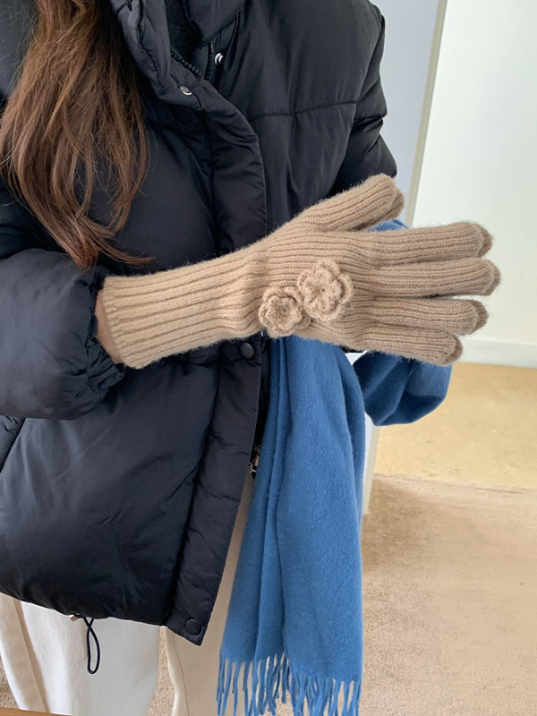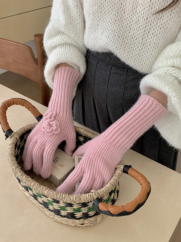 부드럽고 귀여운 꽃 따뜻한 긴 니트 장갑 여성의 가을과 겨울 방한 엑스트라 핑거 터치 스크린 손가락