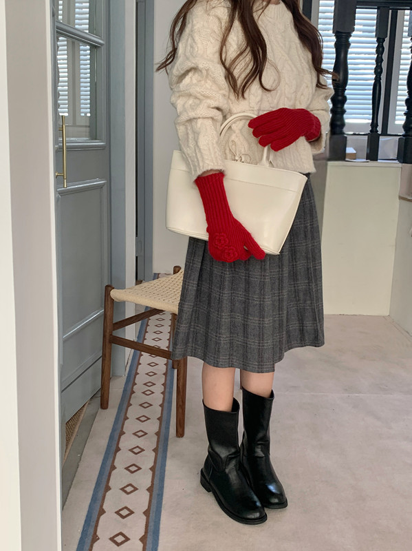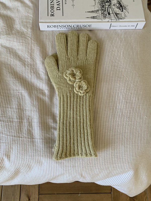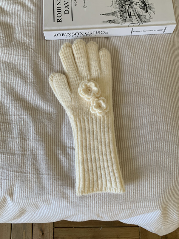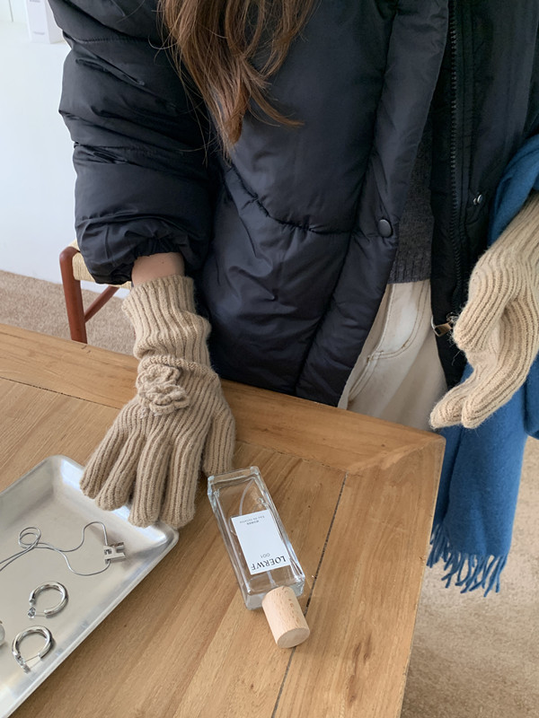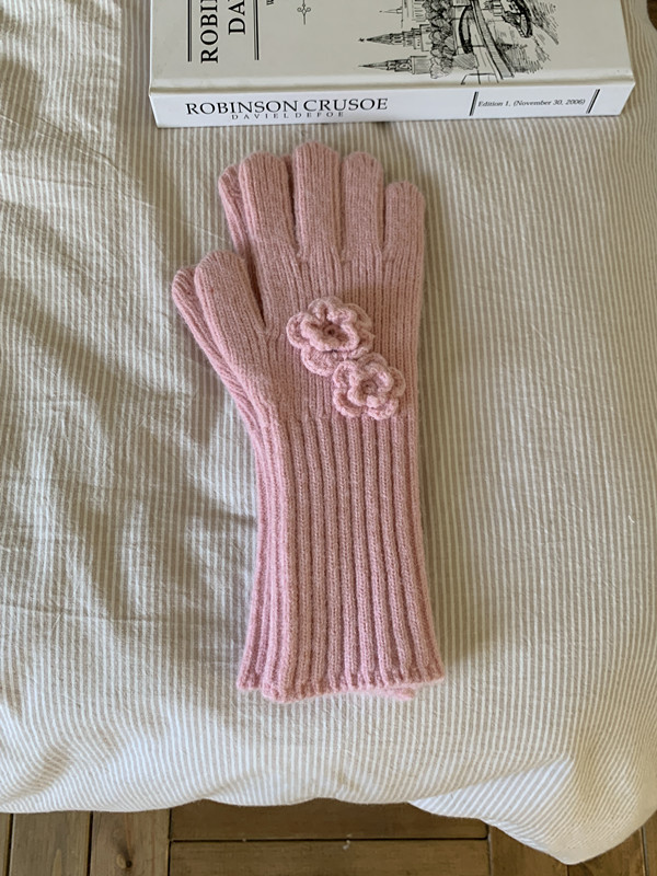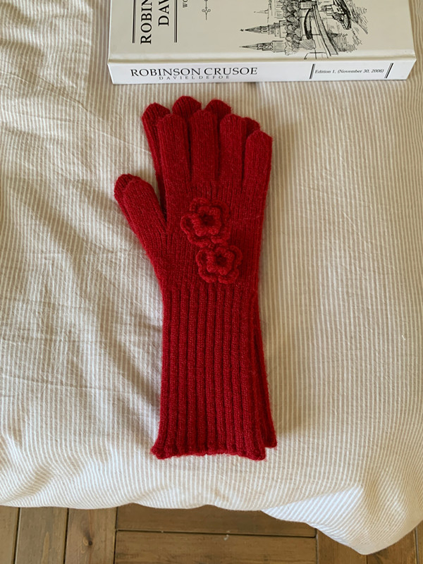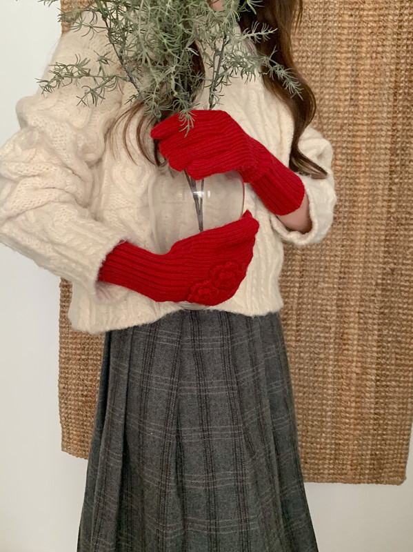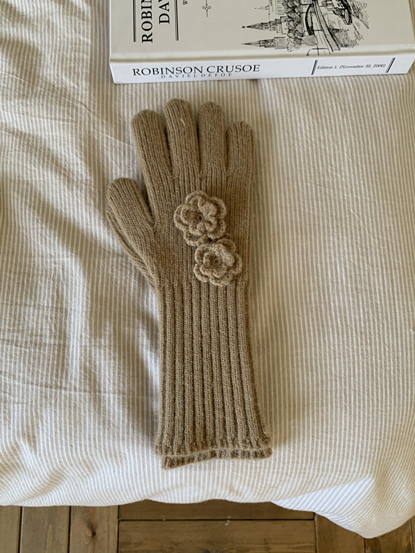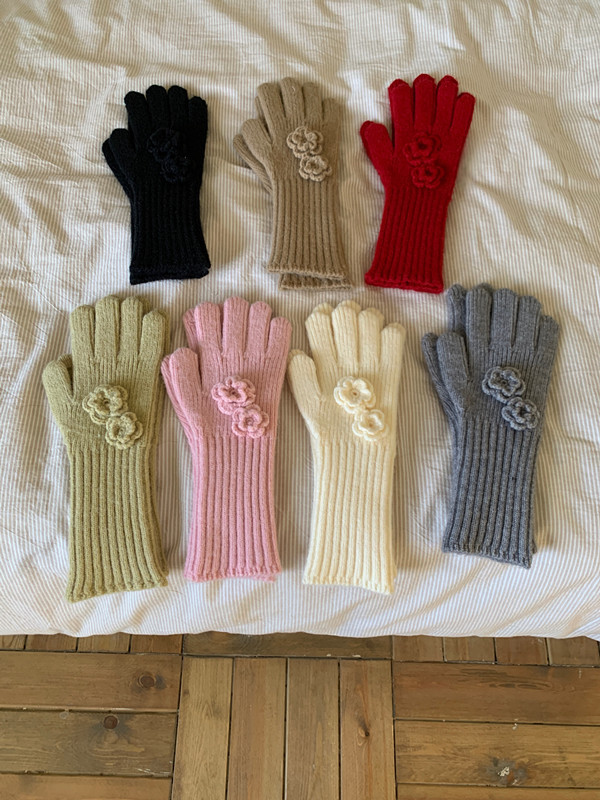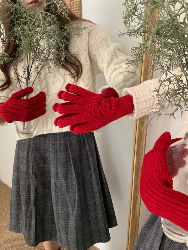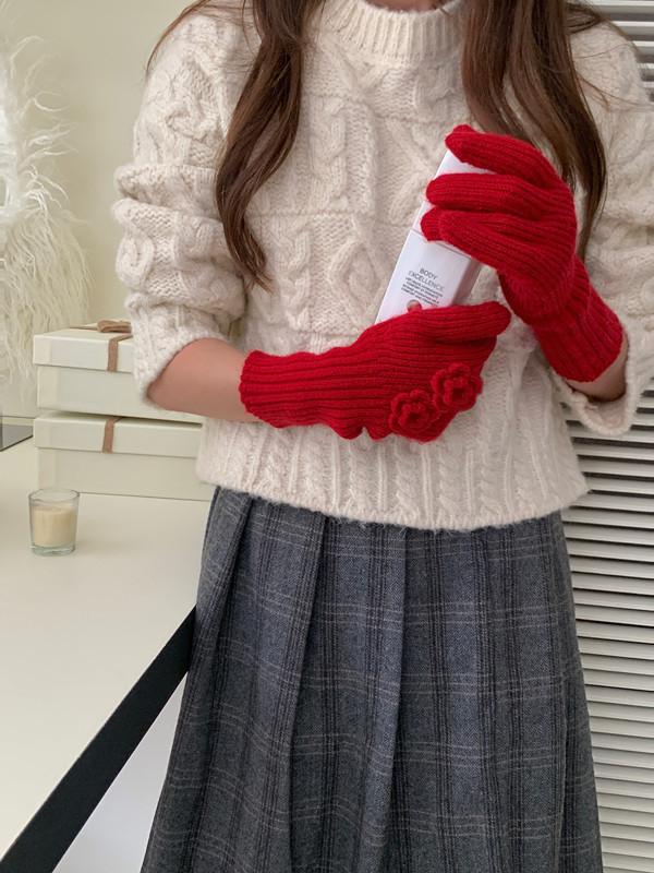 부드럽고 귀여운 꽃 따뜻한 긴 니트 장갑 여성의 가을과 겨울 방한 엑스트라 핑거 터치 스크린 손가락