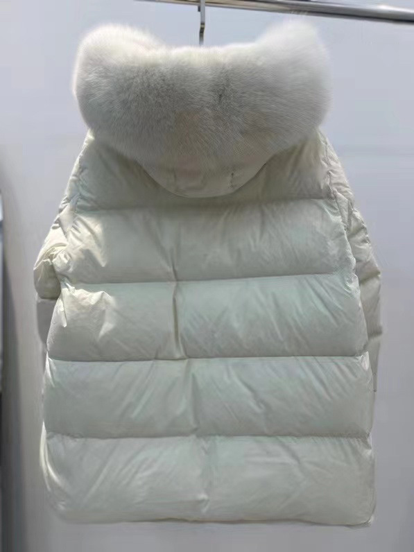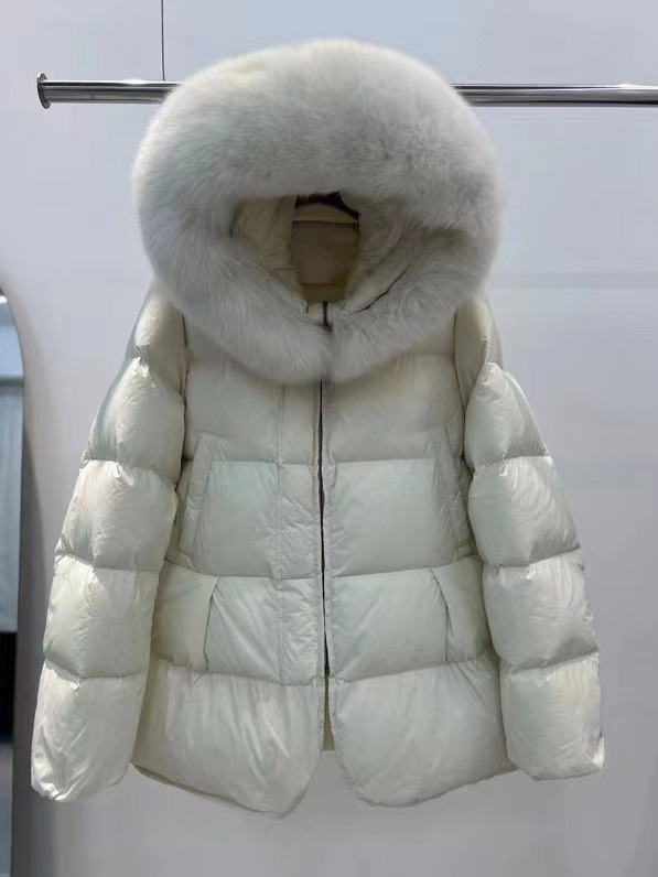 2024 겨울 유럽 역 폭스 모피 칼라 A 자형 케이프 화이트 덕 아래로 슬리밍 후드 짧은 다운 재킷 여성 패션