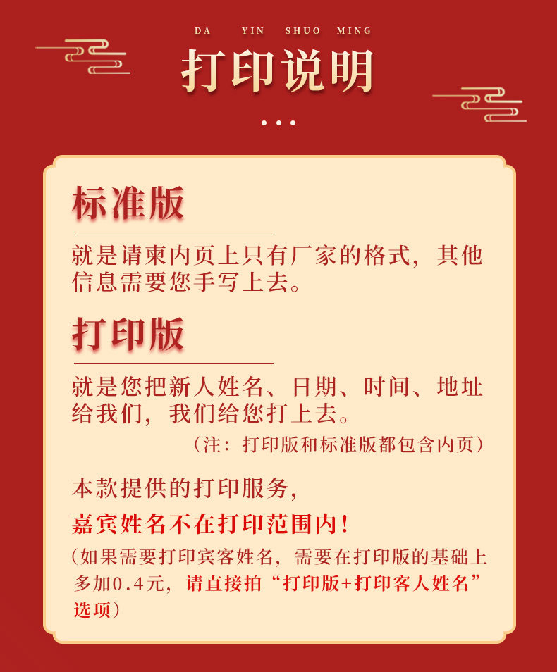 • 새겨진 웨딩 포스트(빅 레드) 10장 인쇄 버전