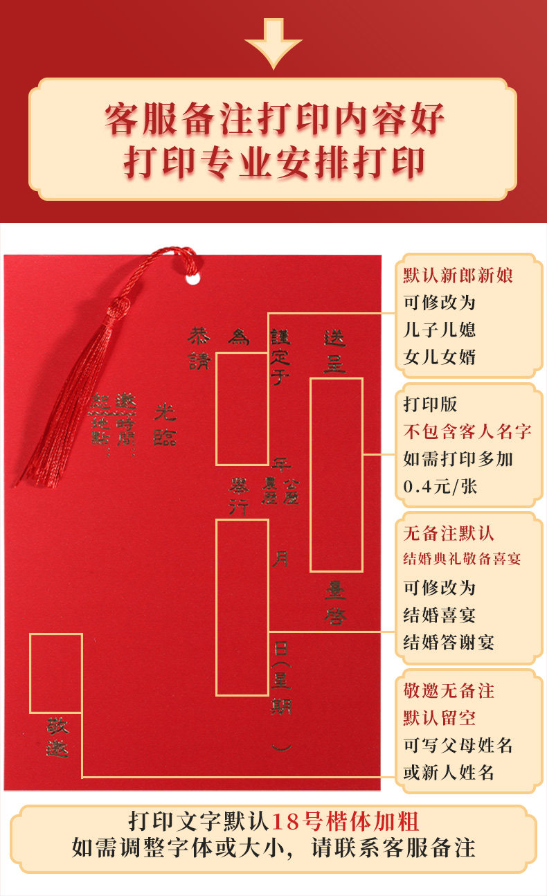 • 새겨진 웨딩 포스트(빅 레드) 10개 표준 버전