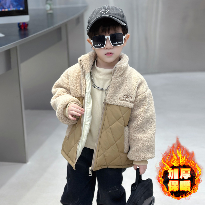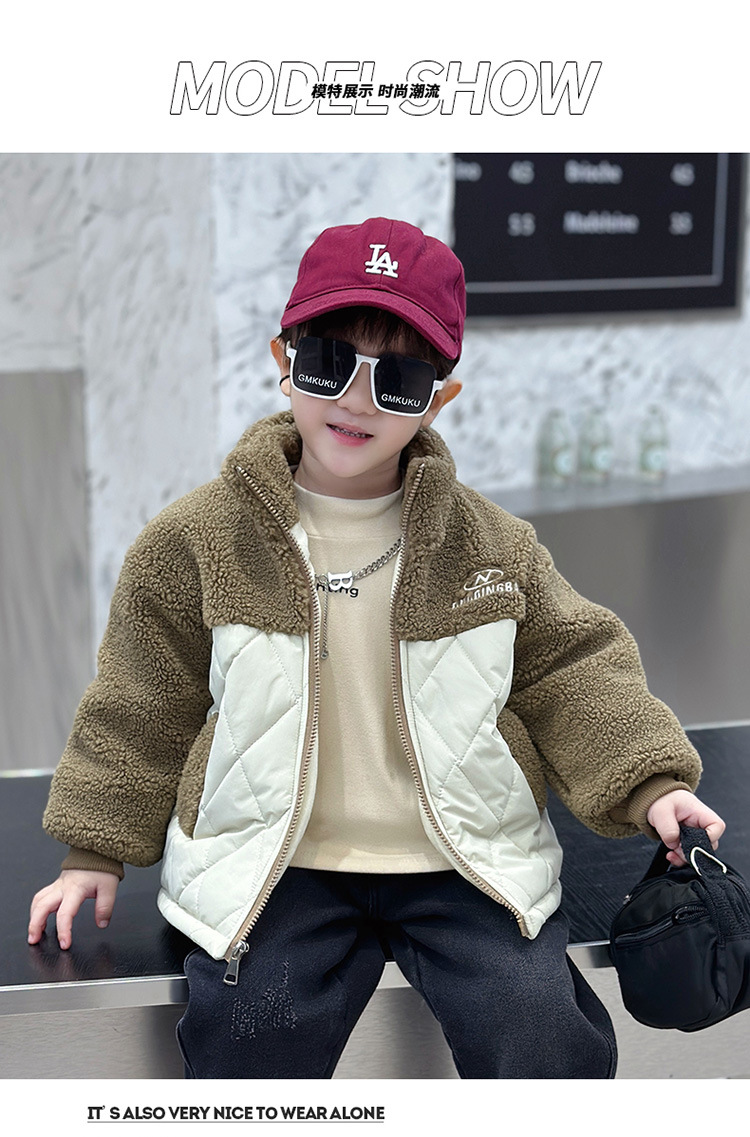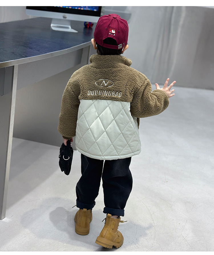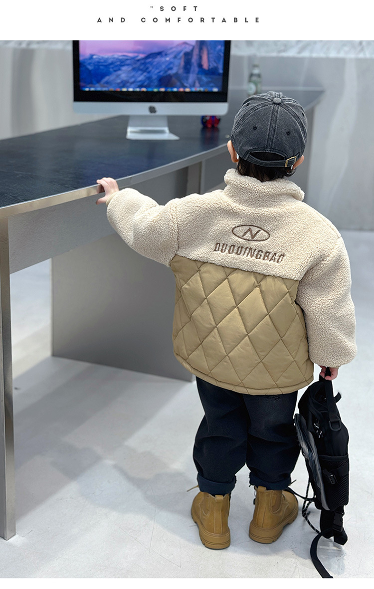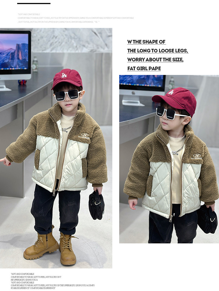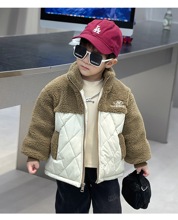 남아 겨울용 누빔 재킷 2025 신상 스타일리시한 아기 배색 털 스웨터 아동용 두꺼운 보온 면옷 트렌디스토어 가기