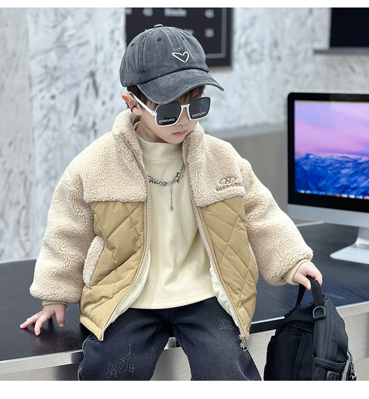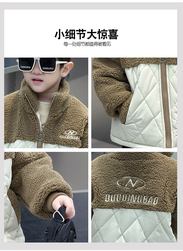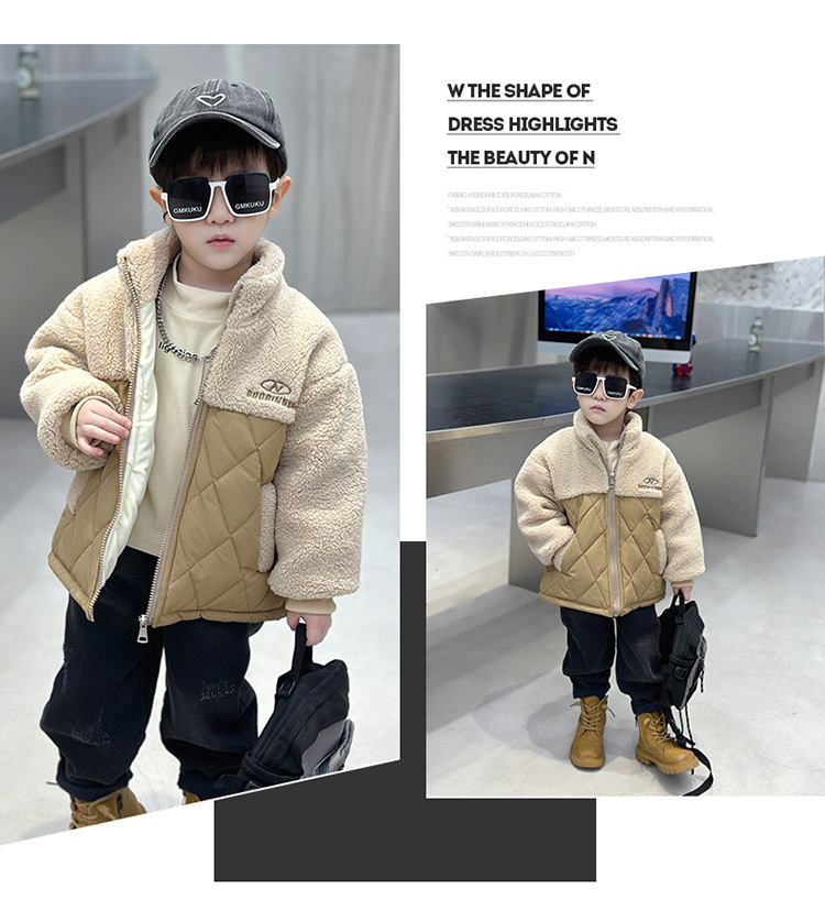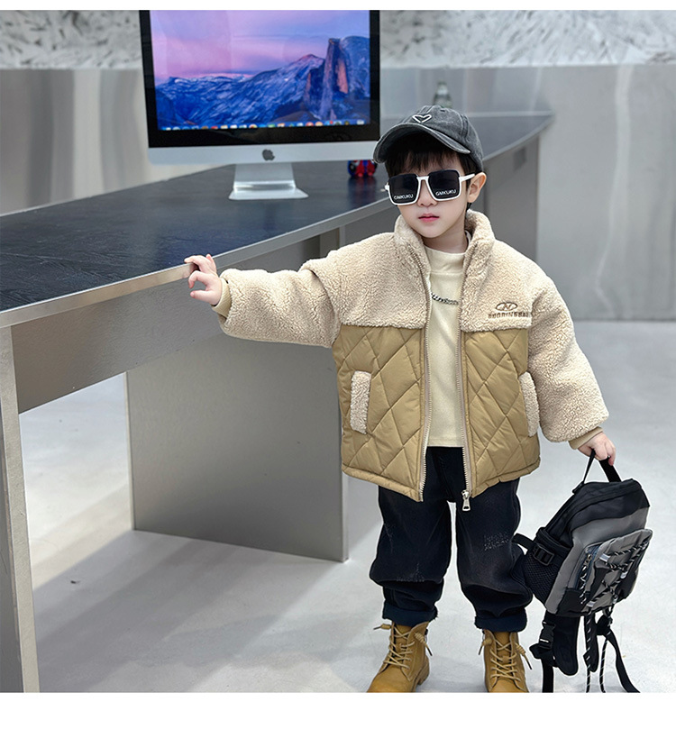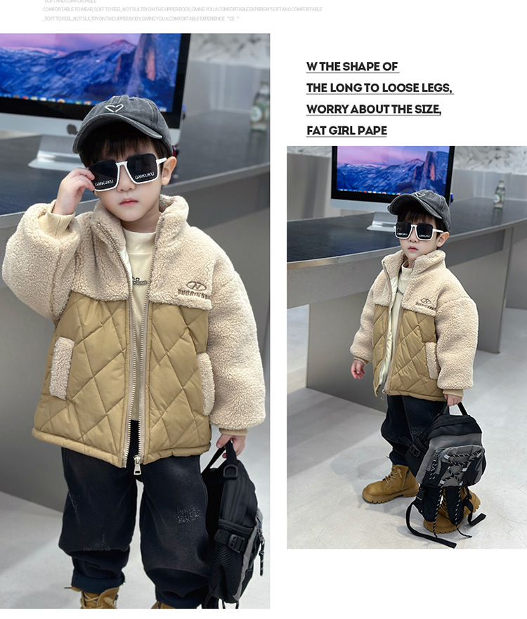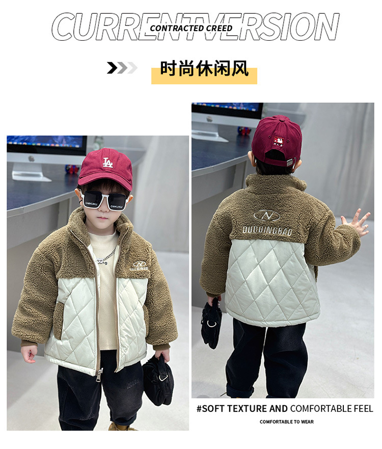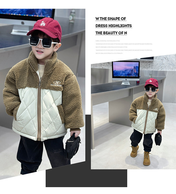 남아 겨울용 누빔 재킷 2025 신상 스타일리시한 아기 배색 털 스웨터 아동용 두꺼운 보온 면옷 트렌디스토어 가기