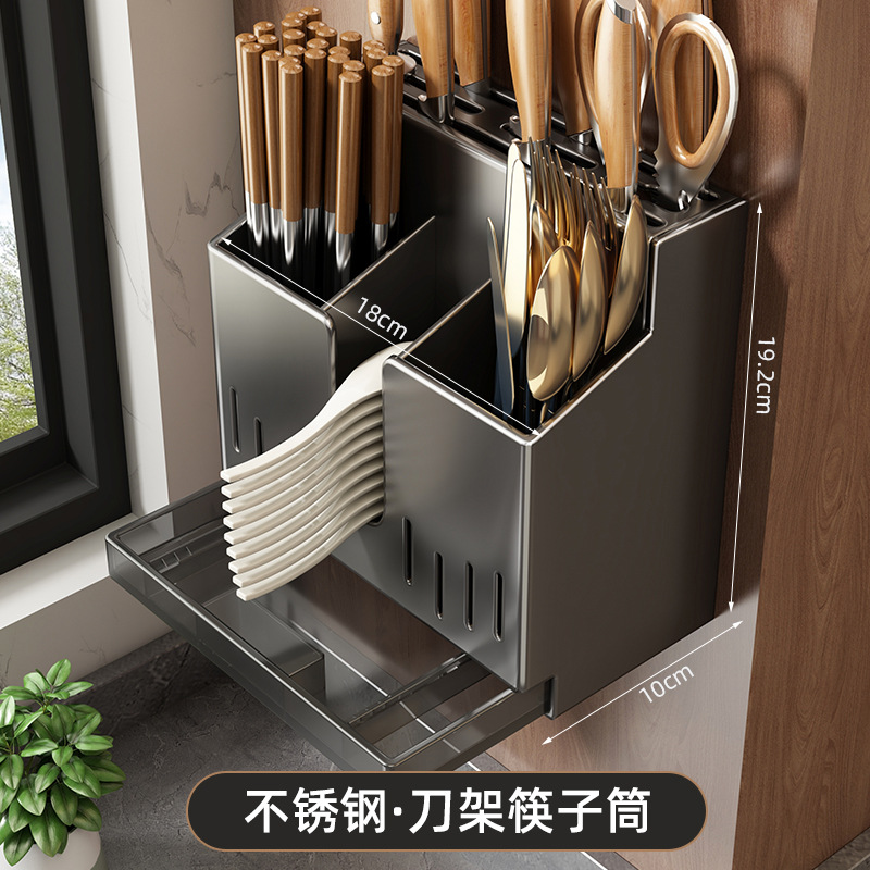 • 스테인레스 스틸 총재 칼 홀더, 젓가락 및 스푼 배럴 [벽걸이형 조리대 겸용]