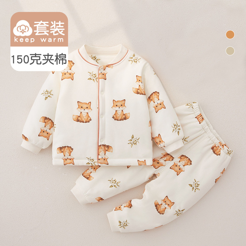 유아용 면옷 세트, 봄옷, 여자 아기용 따뜻하고 두꺼운 어린이 면옷과 면바지, 봄과 가을용 분리형 누빔옷스토어 가기