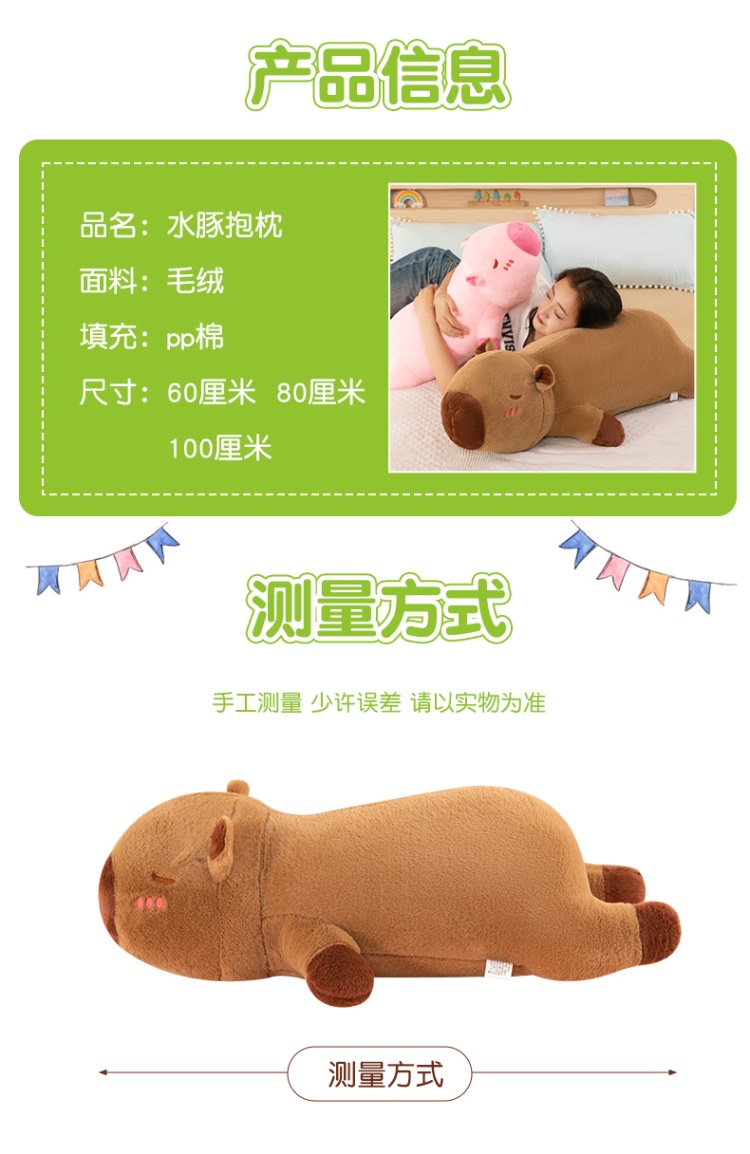 국경 간 카피 바라 인형 대형 잠자는 카피 발라 봉제 장난감 인형 긴 스트립 베개 잠자는 헝겊 인형