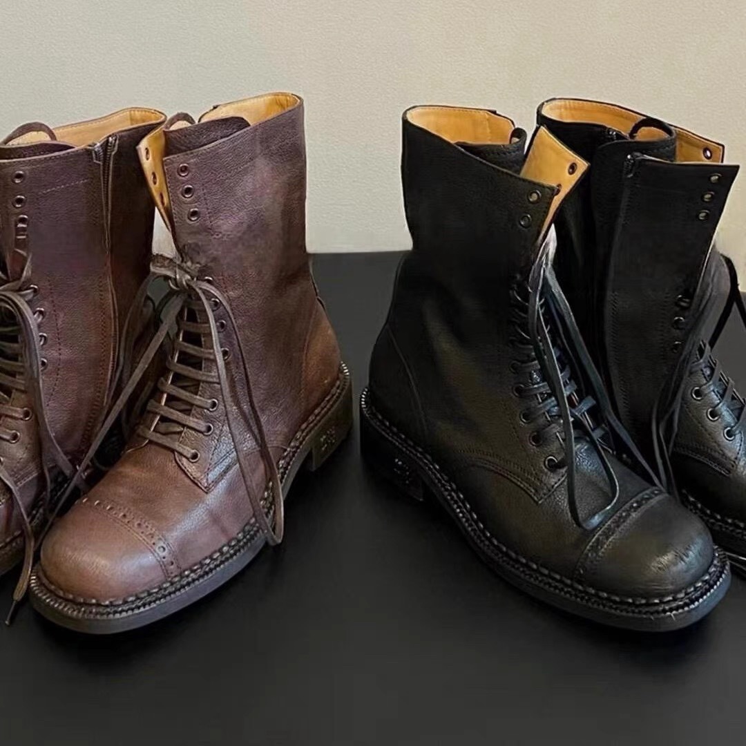 Cowhide Retro Square Head 두꺼운 힐 레이스 업 Old British Martins 2024 가을 및 겨울 새로운 높이 증가 웨스턴 부츠 발목 부츠스토어 가기