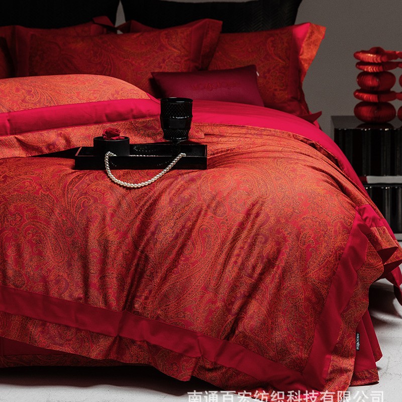 100 신장 긴 스테이플 코튼 웨딩 코튼 4 피스 웨딩 코튼 빅 레드 라이트 럭셔리 하이 엔드 느낌 키트