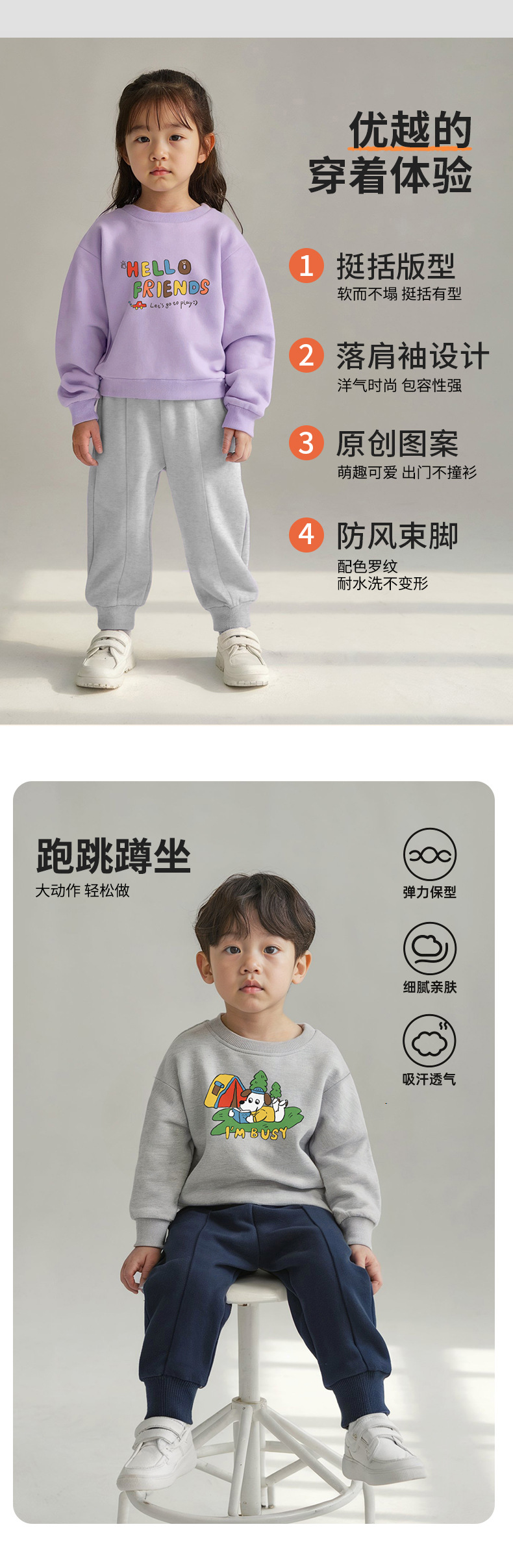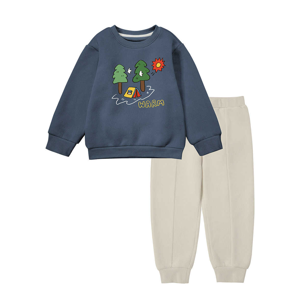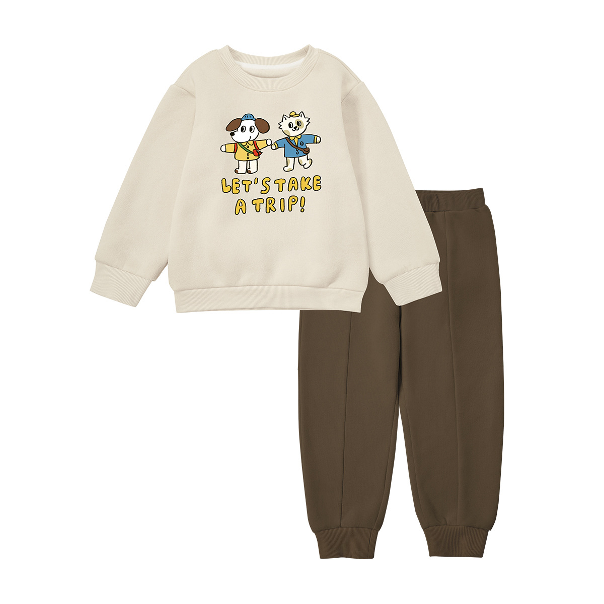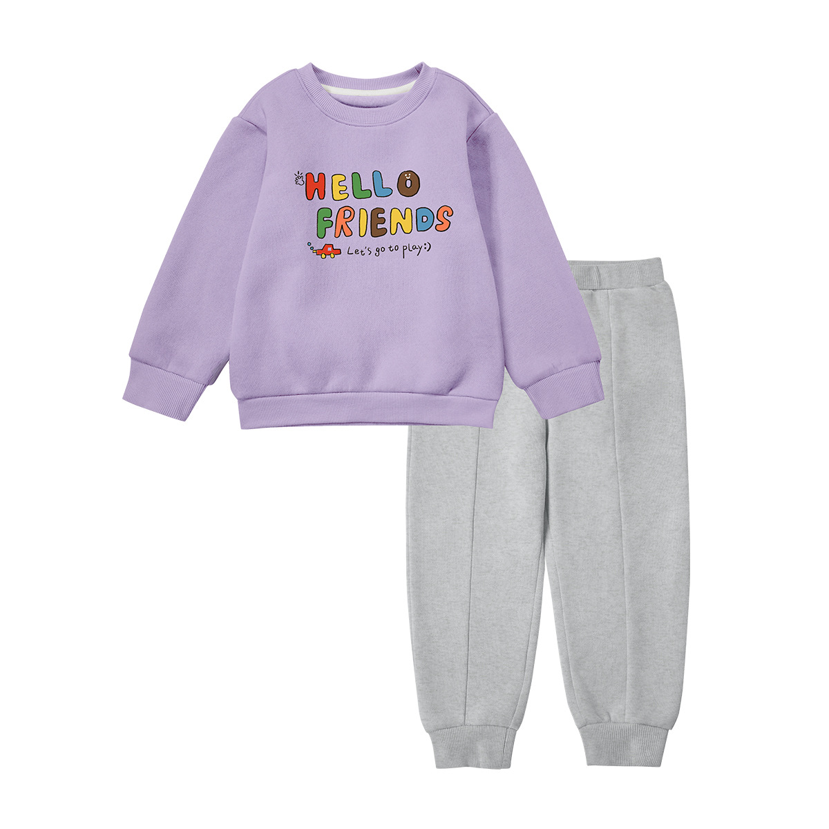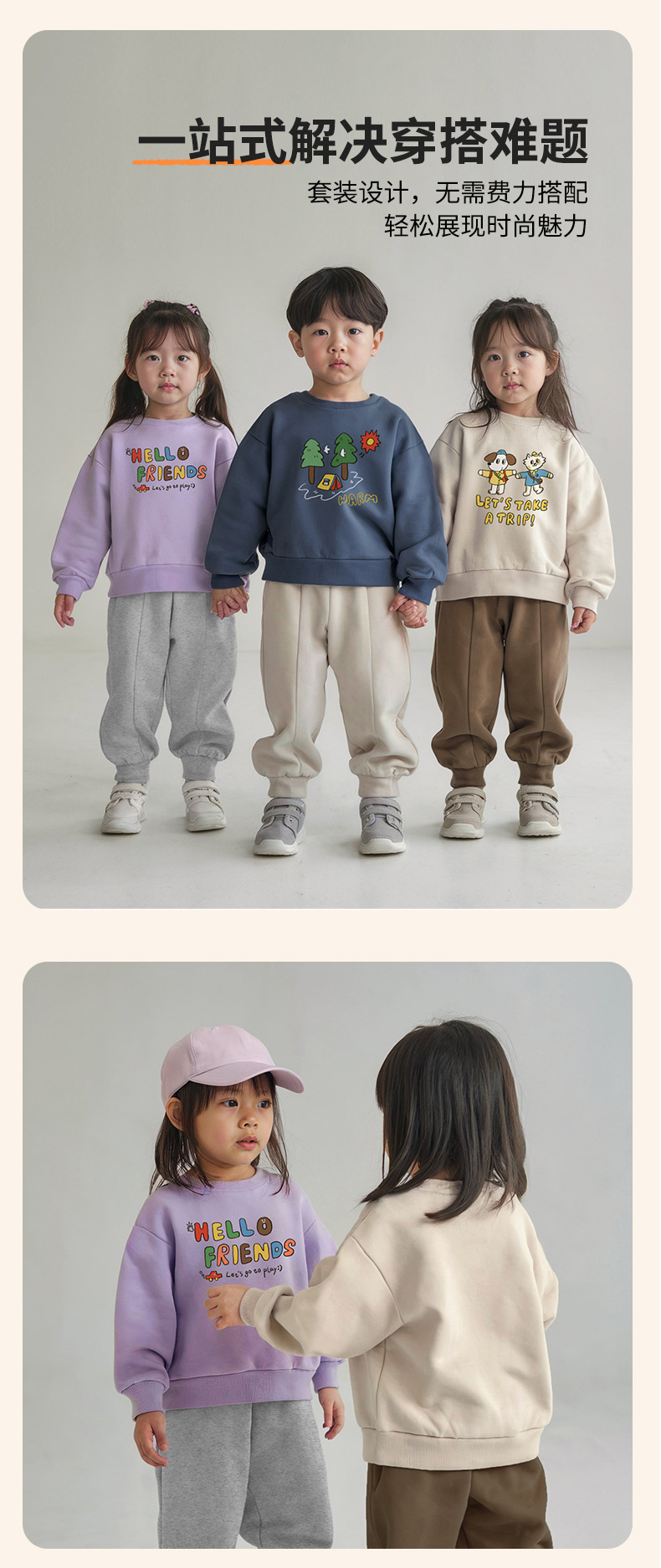 미니 존 소년 소녀 스포츠 세트 기모 두꺼운 어린이 스웨터 바지 가을과 겨울 어린이 따뜻한 투피스 세트스토어 가기