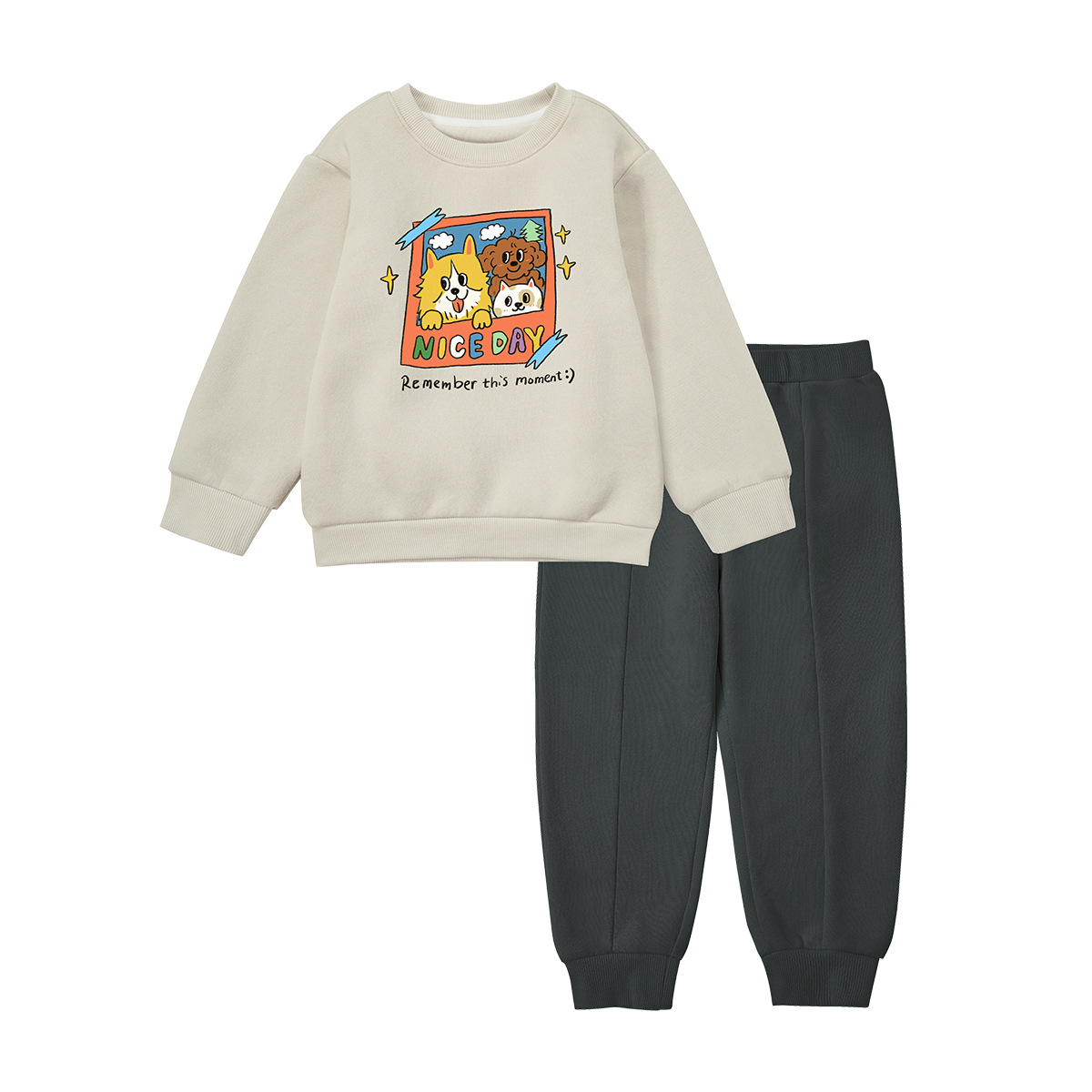 미니 존 소년 소녀 스포츠 세트 기모 두꺼운 어린이 스웨터 바지 가을과 겨울 어린이 따뜻한 투피스 세트