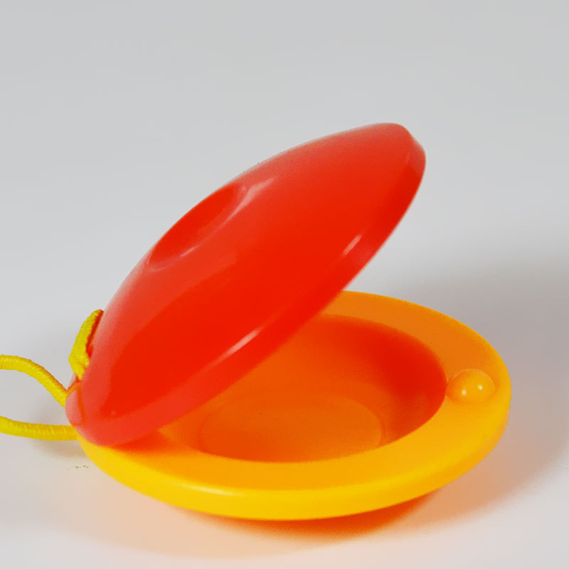 • 한 쌍의 플라스틱 캐스터네츠(빨간색과 노란색)