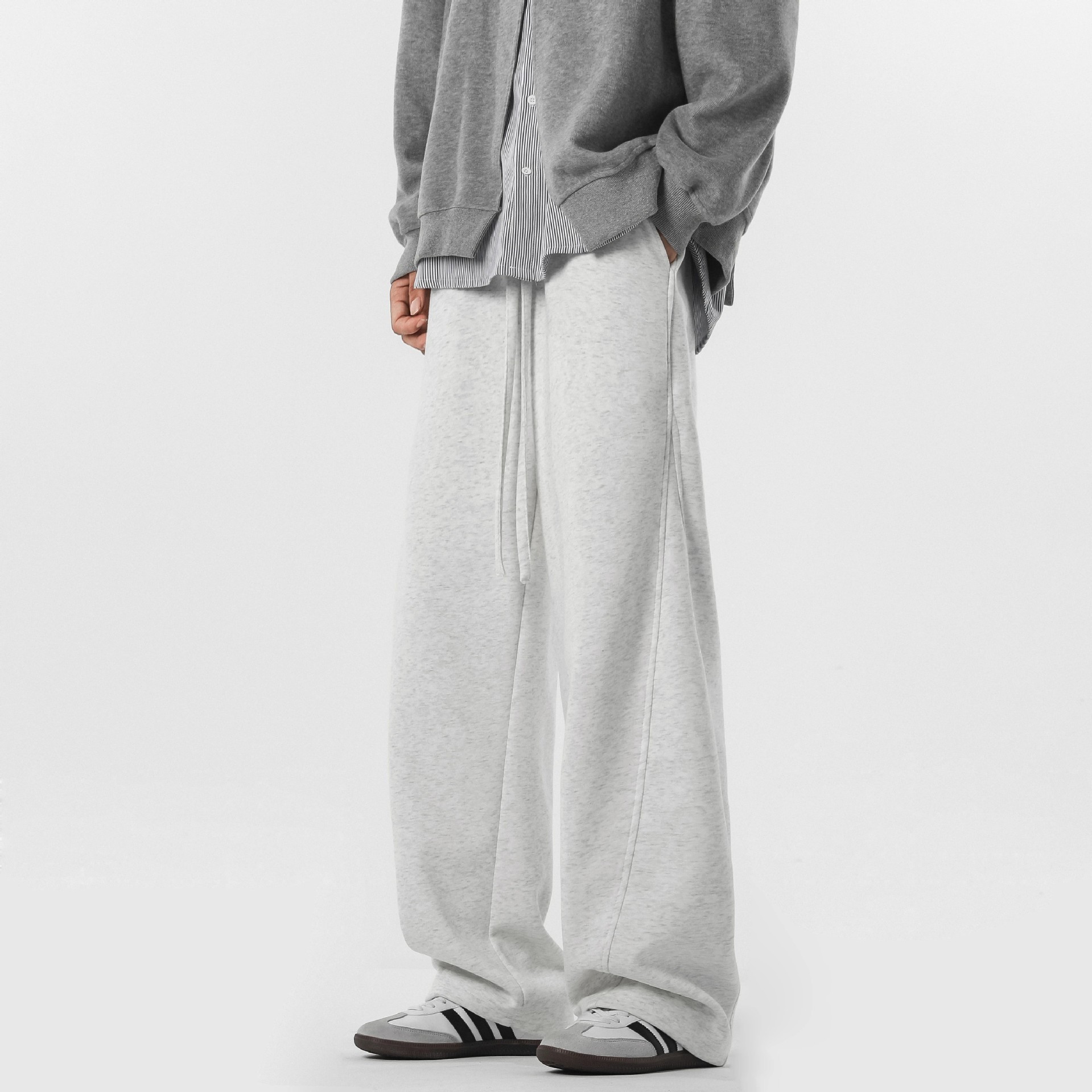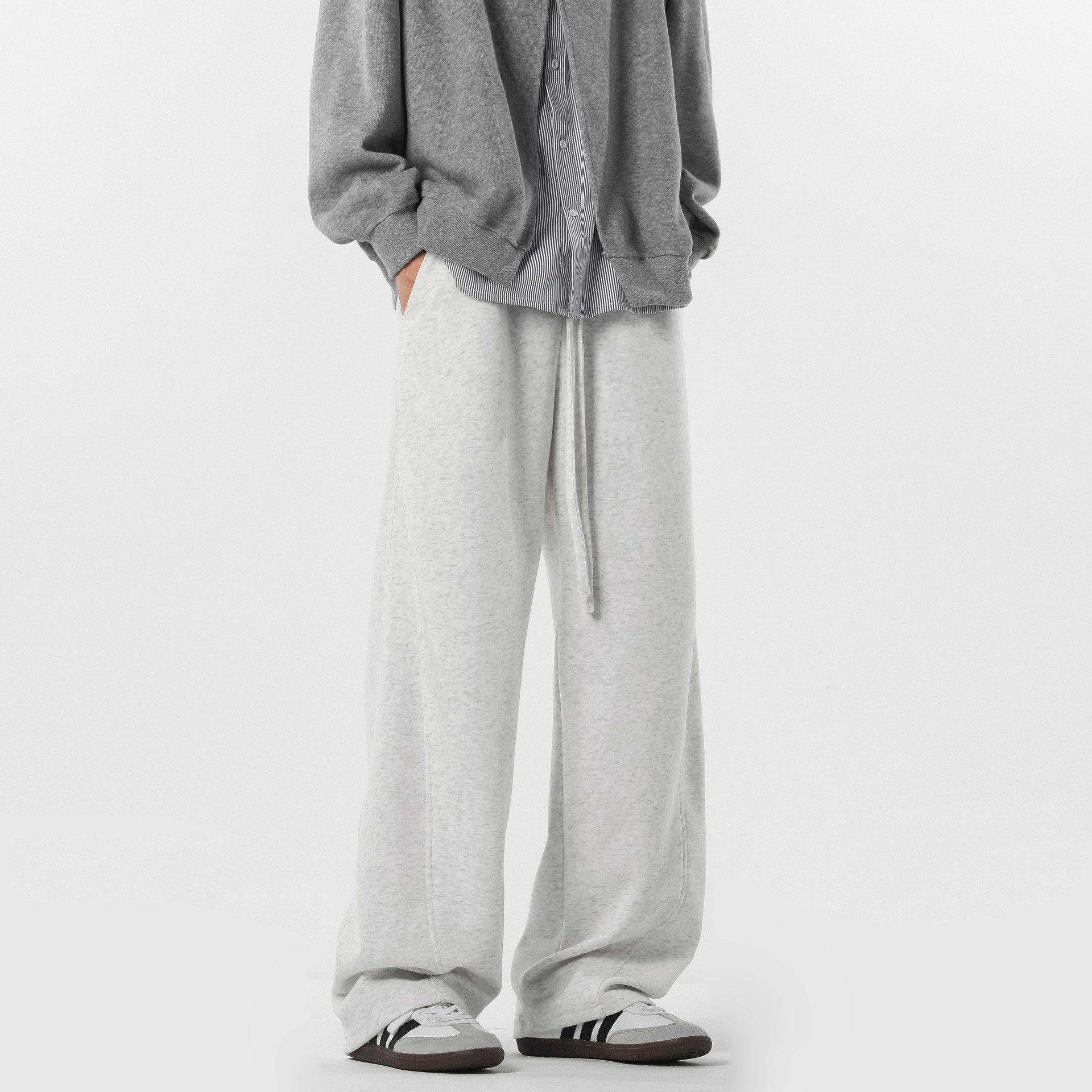 미국식 하이 스트리트 시미 터 바지 남자 가을 패션 브랜드 바느질 와이드 레그 스포츠 바지 레트로 올매치 스트레이트 캐주얼 바지스토어 가기